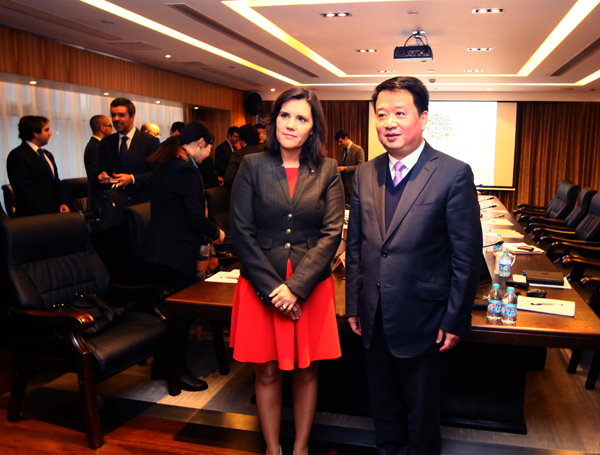 克里斯塔斯部长在沟通交流中表达了向中国市场开放出口葡萄酒、橄榄油、乳制品等产品的意向。叶永明总裁简要分析了当前中国零售市场发展状况及市场需求,结合百联在上海、在中国的市场地位以及今后集团的发展战略,表示深化改革、扩大开放是百联做实、做强、做大的必由之路,希望与葡萄牙企业寻找合作商机,通过进一步沟通商洽,实现共同发展,合作共赢。