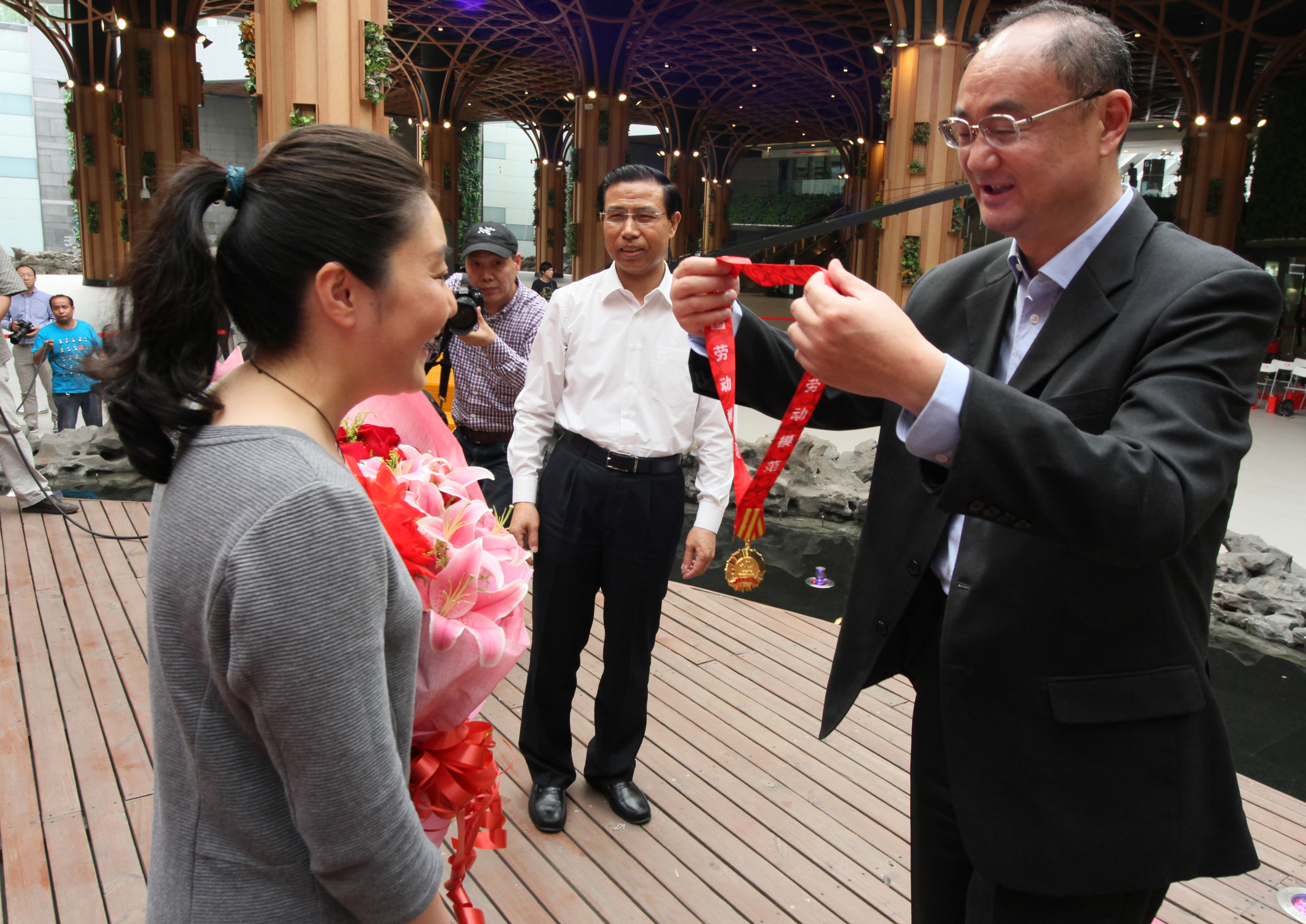 5月19日下午,集团在百联世博源购物中心举行“2015年百联集团劳模先进表彰大会暨‘i百联,秀风采’情景主持大赛决赛”。