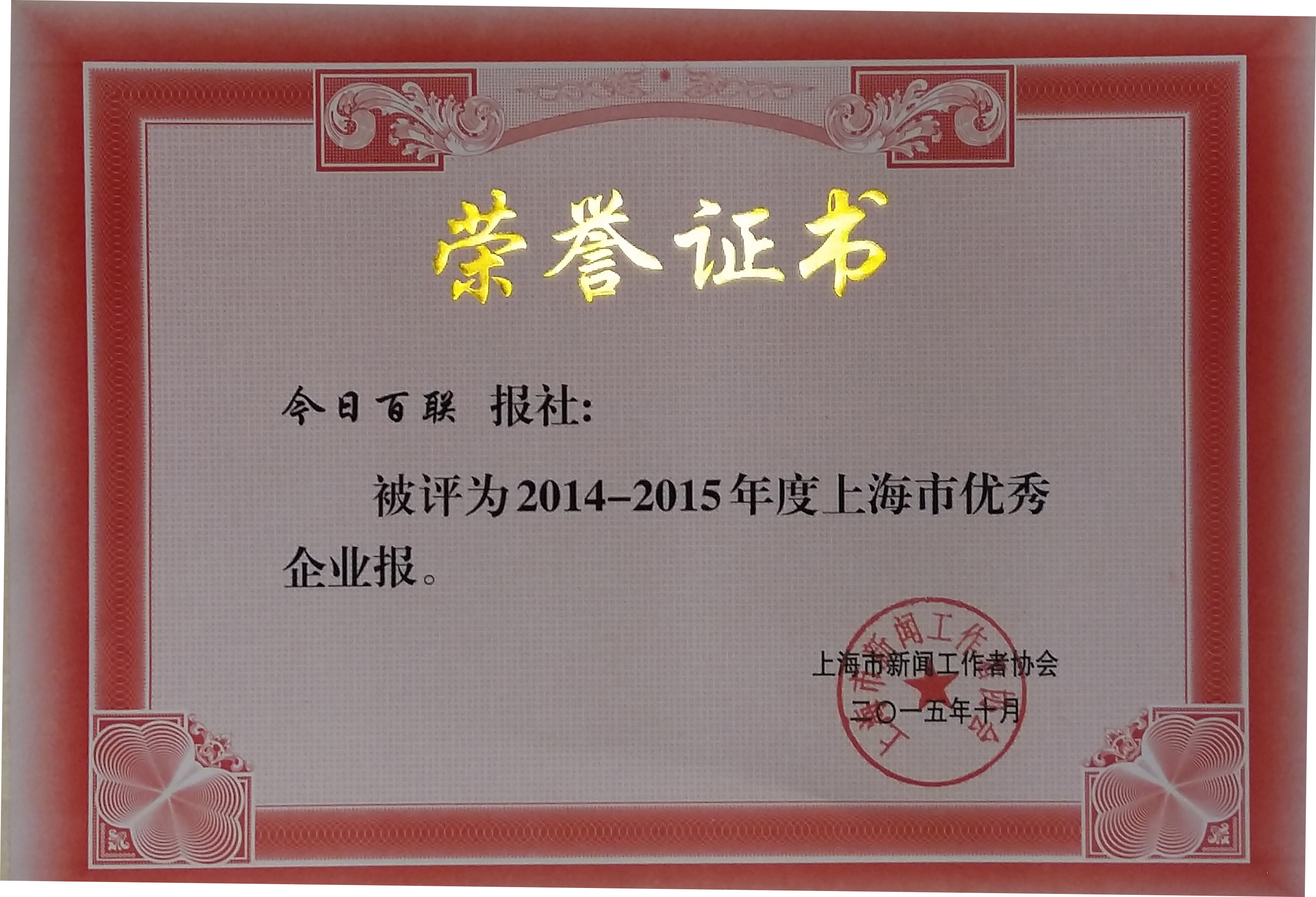 在日前召开的上海市新闻工作者协会年会上,集团主办的《今日百联报》被授予2014-2015年度上海市优秀企业报荣誉称号。