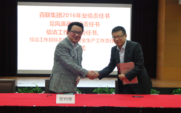(叶永明与百联电商总经理、党委副书记黄华签订责任书)