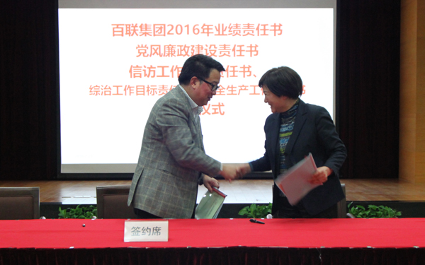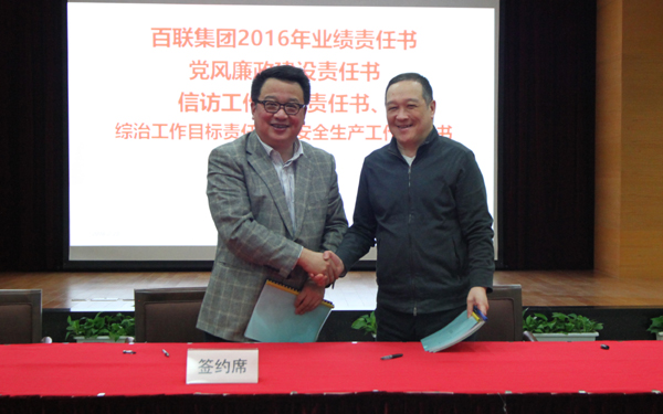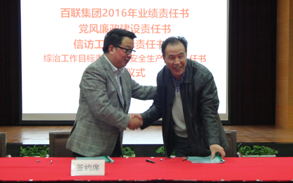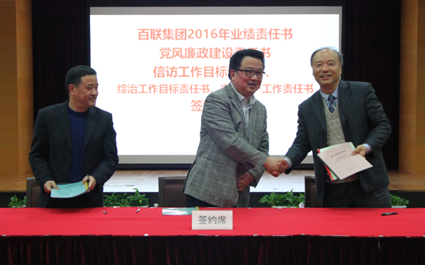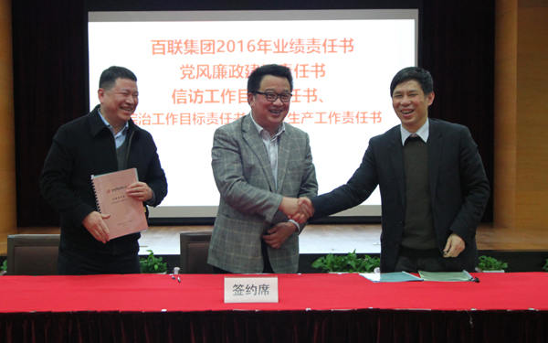 集团党委书记、董事长、总裁叶永明与各二级公司(中心)党政主要负责同志分别签订了《2016年业绩责任书》、《2016年党风廉政建设责任书》以及《2016年信访工作目标责任书、综治工作目标责任书和安全生产工作责任书》。