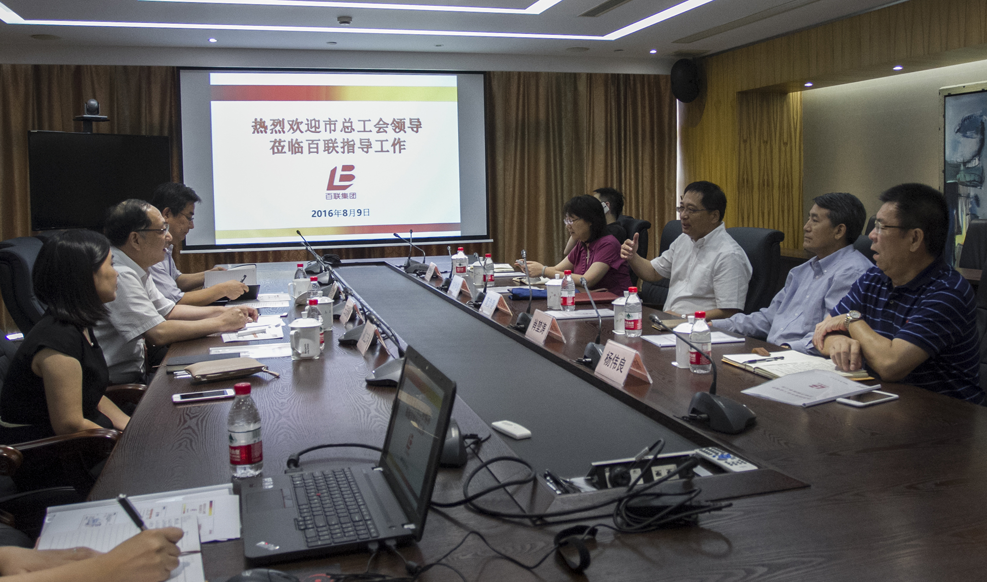 8月9日下午,上海市总工会党组书记莫负春到百联集团进行工作调研,市总工会党组副书记肖堃涛、秘书长宋钟蓓等陪同。集团党委书记、董事长、总裁叶永明亲切会见了莫负春一行。集团党委副书记王志刚参加调研。