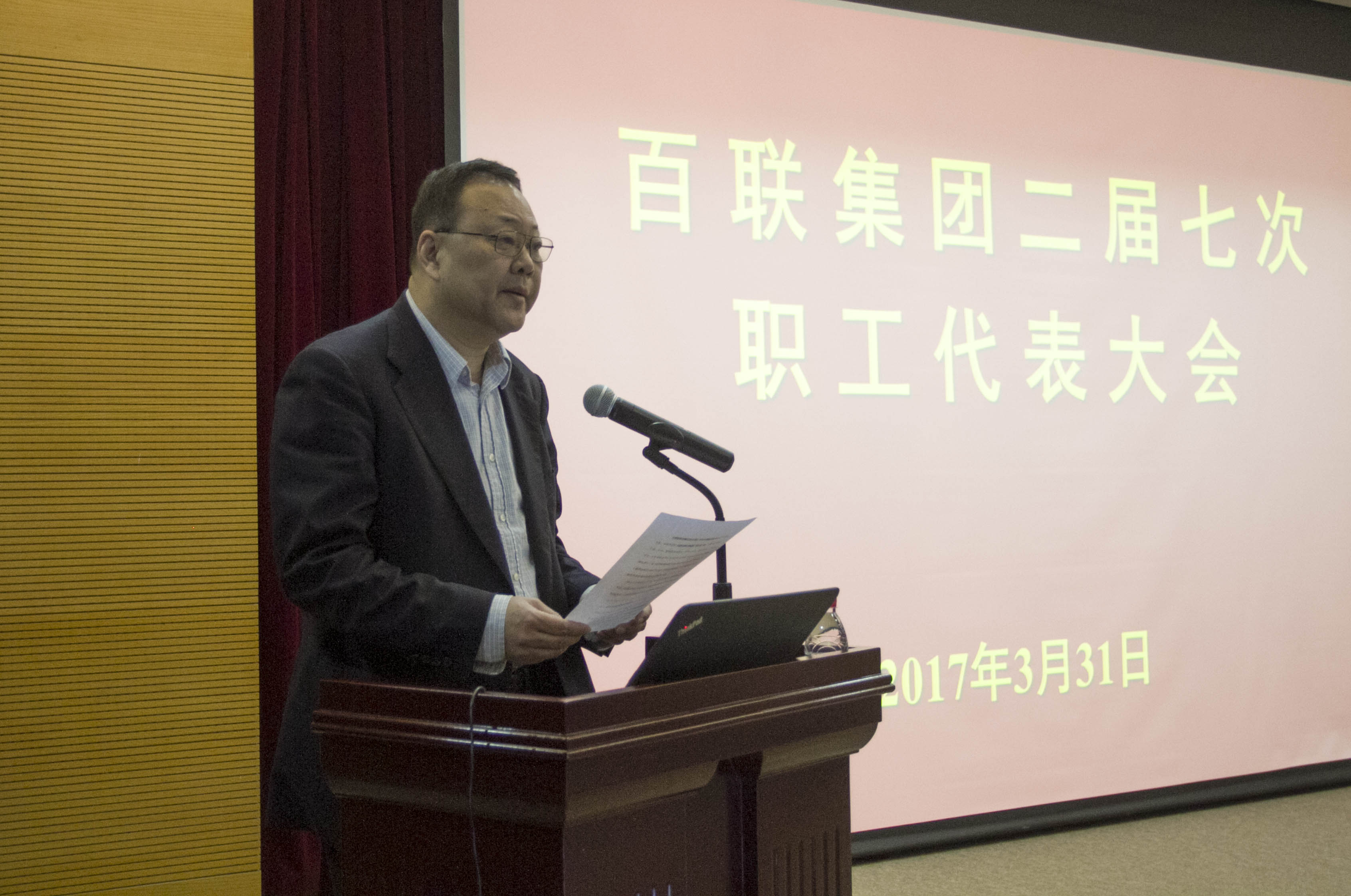 3月31日上午,集团二届七次职工代表大会在百联大厦召开。集团党委书记、董事长、总裁叶永明作《关于百联集团2016年经济工作总结及2017年经济工作要点》的报告,财务总监吕勇作《关于百联集团2016年度业务活动费使用情况和“六金”缴纳情况》的报告。会议审议通过《百联集团员工手册总则(草案)》《百联集团有限公司二届七次职工代表大会决议》,签署了2017年度业绩责任书和信访、综治、安全责任书。集团党政领导班子成员,集团各部室负责人,各公司、中心党政主要负责人及全体职工代表出席。集团党委副书记王志刚主持会议。