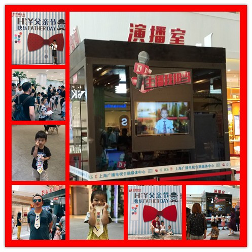 移动演播室的面积尽管不足10平米,但从主播台到提词器都有模有样。同时,通过技术手段还能让顾客和沪上知名主播隔空搭档,录制一段属于自己的新闻视频。顾客们播报的形式也各有特色,有标准的普通话,也有地道的方言,孩子们稚嫩的童音更是萌化了心。父亲节期间,除了播报预制新闻内容,大小朋友们有的还特意带着DIY给爸爸的礼物上主播台,在开篇时说上几句给爸爸的贴心话,用这一特别的方式向父亲表达感恩之情。