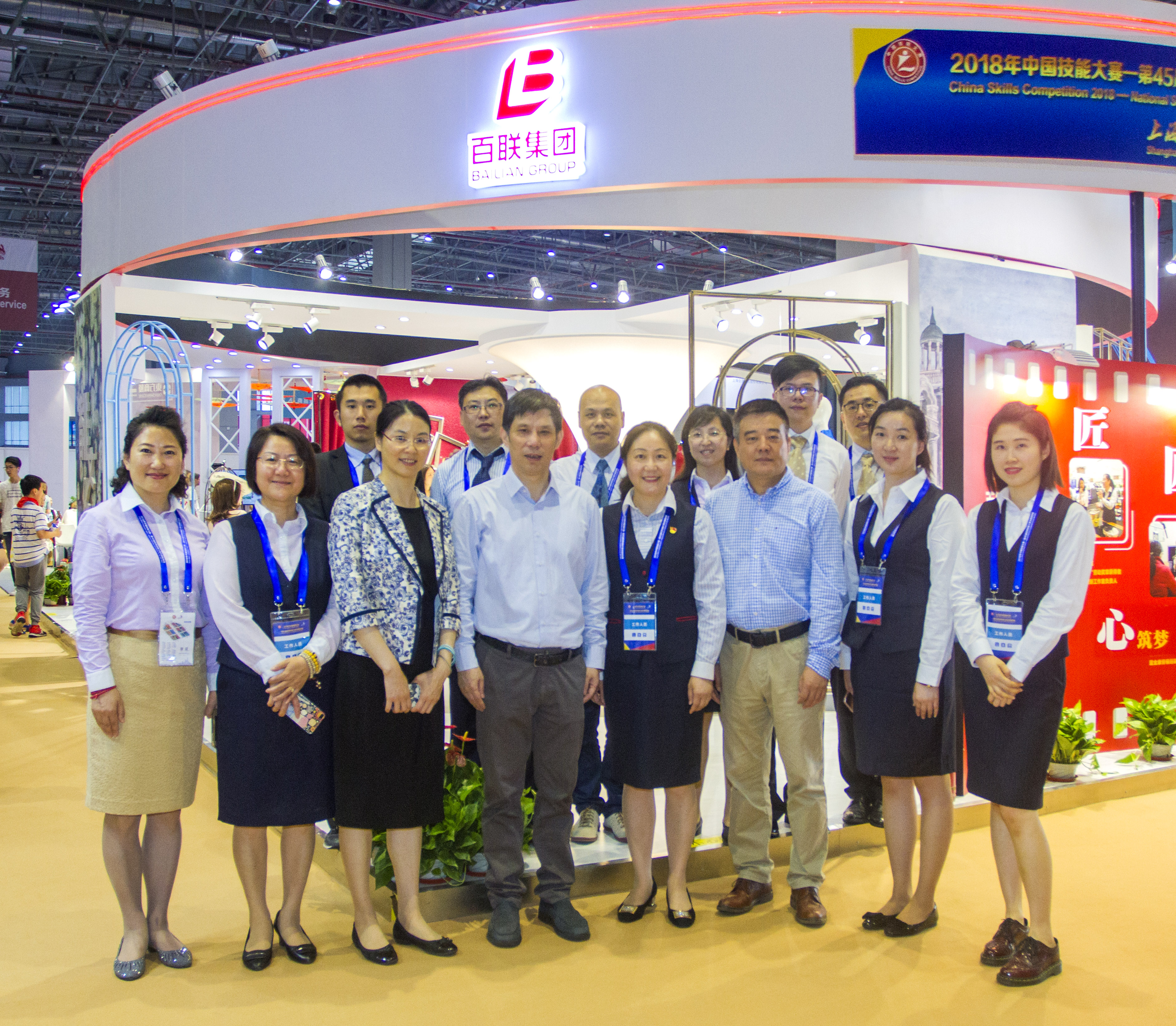 6月12日,2018年中国技能大赛——第45届世界技能大赛全国选拔赛在上海国家会展中心虹馆拉开帷幕。来自全国46个代表队、约900名选手参加上海赛区比赛。百联集团应邀在大赛中进行了技能展示,以“过去、现在、未来”时间轴为串联,生动演绎了“上海购物、上海品牌”的时代变迁。13日,国家人社部部长张纪南、上海市委常委、常务副市长周波一行亲临百联集团展区。集团党委副书记、工会主席许国良陪同参观。党的十九大代表、全国劳模许宁向参观者作讲解。