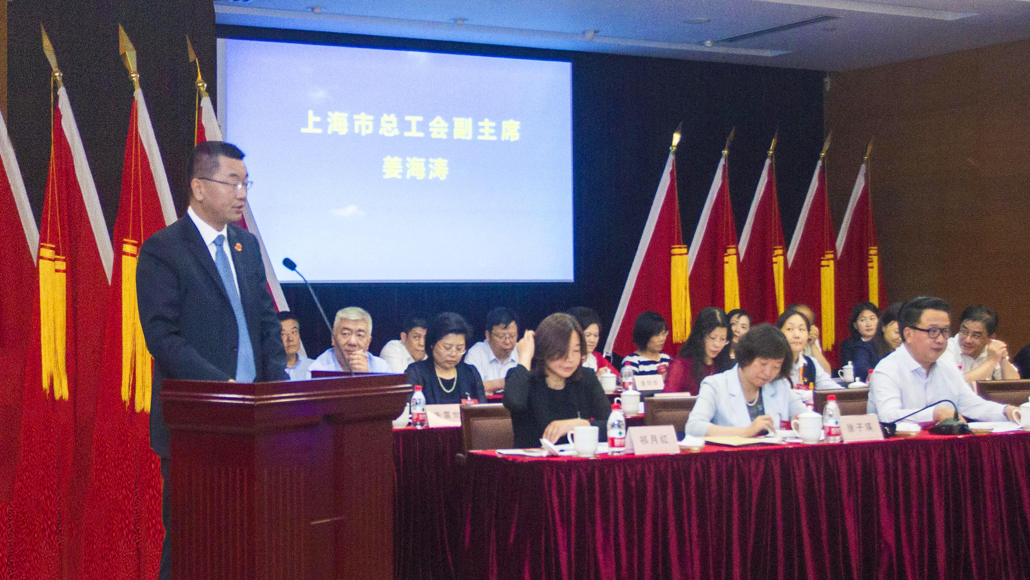 姜海涛代表市总工会对大会的召开表示热烈的祝贺。他指出,百联集团工会在党委领导下,围绕中心、服务大局,做了大量卓有成效的工作。切实加强企业民主管理,扎实推进厂务公开工作,在健全完善职工权益维护机制、营造企业民主和谐氛围上发挥了重要作用;持续深化职工素质工程建设,不断加强劳模先进和工匠队伍建设,组织动员广大职工立足岗位、建功立业,为提升企业核心竞争力贡献了智慧和力量;竭诚服务广大职工,做实互助保障、做精帮扶救助、做优实事项目,让更多职工感受到工会组织的温暖和关爱。