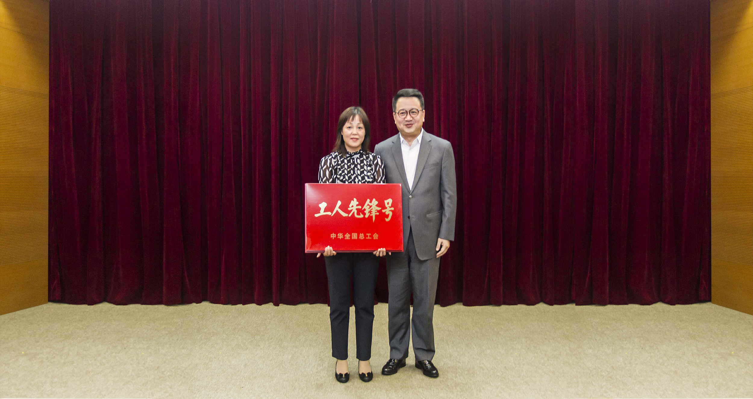 ▲浦静波为2017年上海市群众性劳动竞赛工人先锋号、五一劳动奖章获得集体、个人颁奖