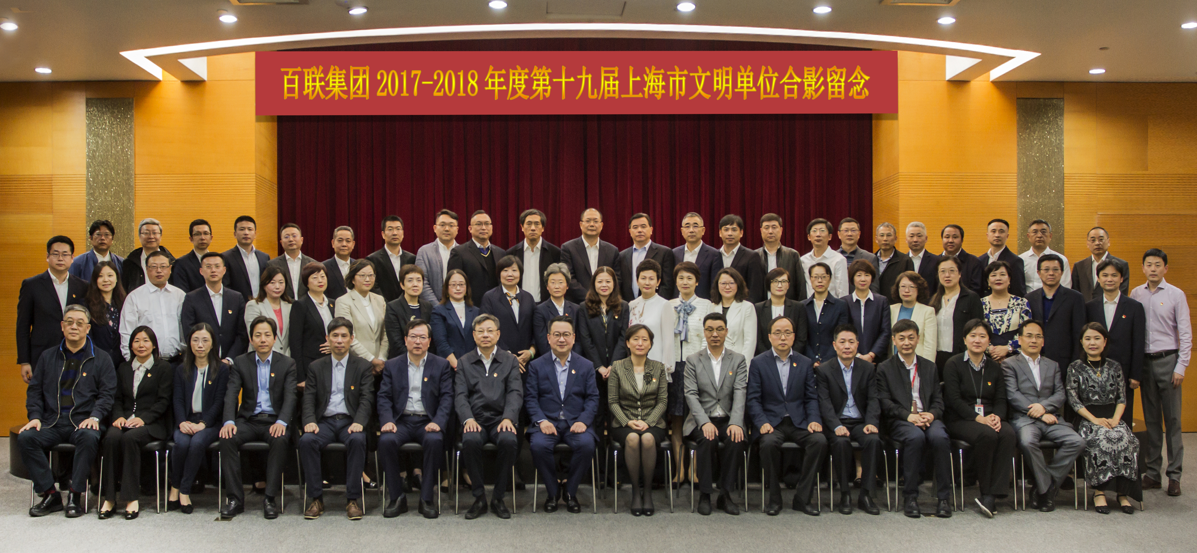 会前,集团领导班子成员、监事会主席与集团系统获得第十九届上海市文明单位称号的企业主要负责人合影。会上,集团领导向获得第十九届上海市文明单位荣誉称号的企业颁奖。永安百货、联华超市、物贸大厦、河岸公司在大会上作交流发言。
