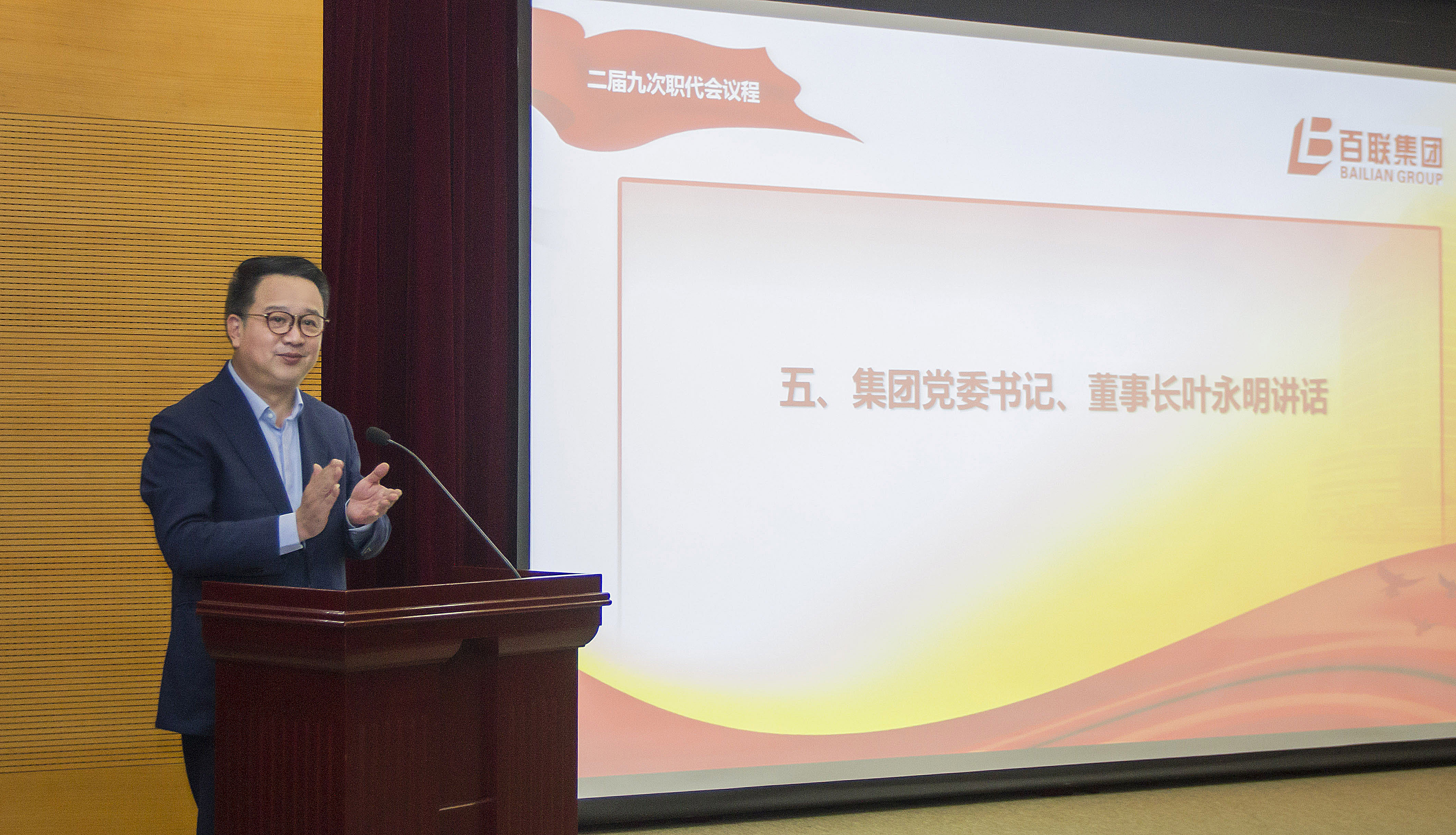 10月10日下午,集团二届九次职工代表大会在百联大厦召开。集团党委书记、董事长叶永明讲话,党委副书记、总裁徐子瑛作经济工作报告,党委副书记、工会主席秦青林主持会议。集团领导班子成员、监事会主席出席。