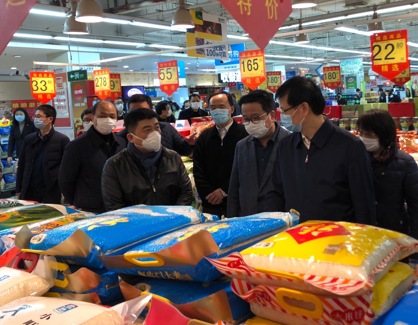 2月14日下午,上海市副市长许昆林、市政府副秘书长尚玉英一行来到世纪联华仙霞店和百联西郊购物中心实地了解企业复工、市场保供、商业场所运营,以及疫情防控措施落实等情况。市商务委、市市场监督管理局相关领导随行。集团党委书记、董事长叶永明,长宁区副区长翁华健等陪同调研。