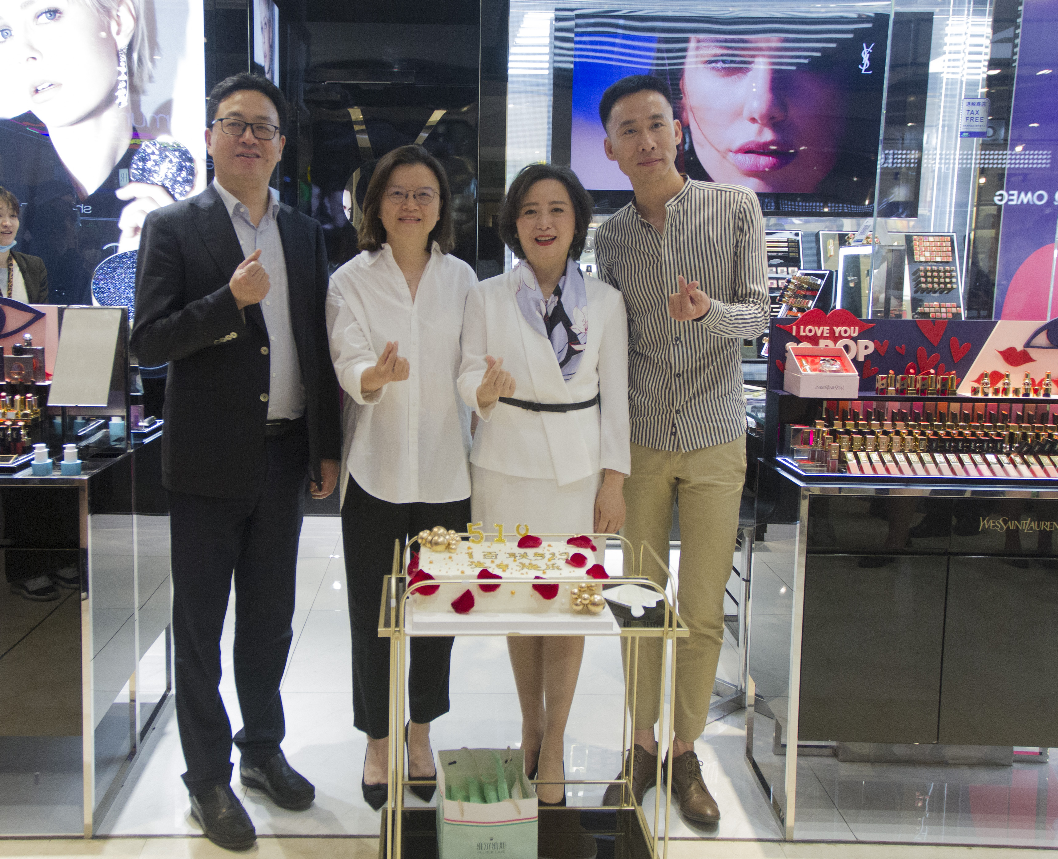 在位于浦东新区张杨路501号第一八佰伴直播间,YSL圣罗兰中国首席彩妆老师亲临直播间,为精致的“猪猪女孩”们带来YSL的#红唇波普520限定版口红#新品,并现场演示YSL的百变妆容搭配。令人意外的是,之前提及的神秘嘉宾终于揭开面纱,居然是百联集团总裁徐子瑛女士“空降”直播间,真的是重量级大咖。徐总裁的出现带来了限时福利时间,不仅为旗下第一八佰伴打CALL,为消费者带来超值优惠,同时也向直播间观众们介绍了“i百联”在此次四周年庆中的大促信息。意外的是,直播间现场还出现了“i百联519庆生”蛋糕!