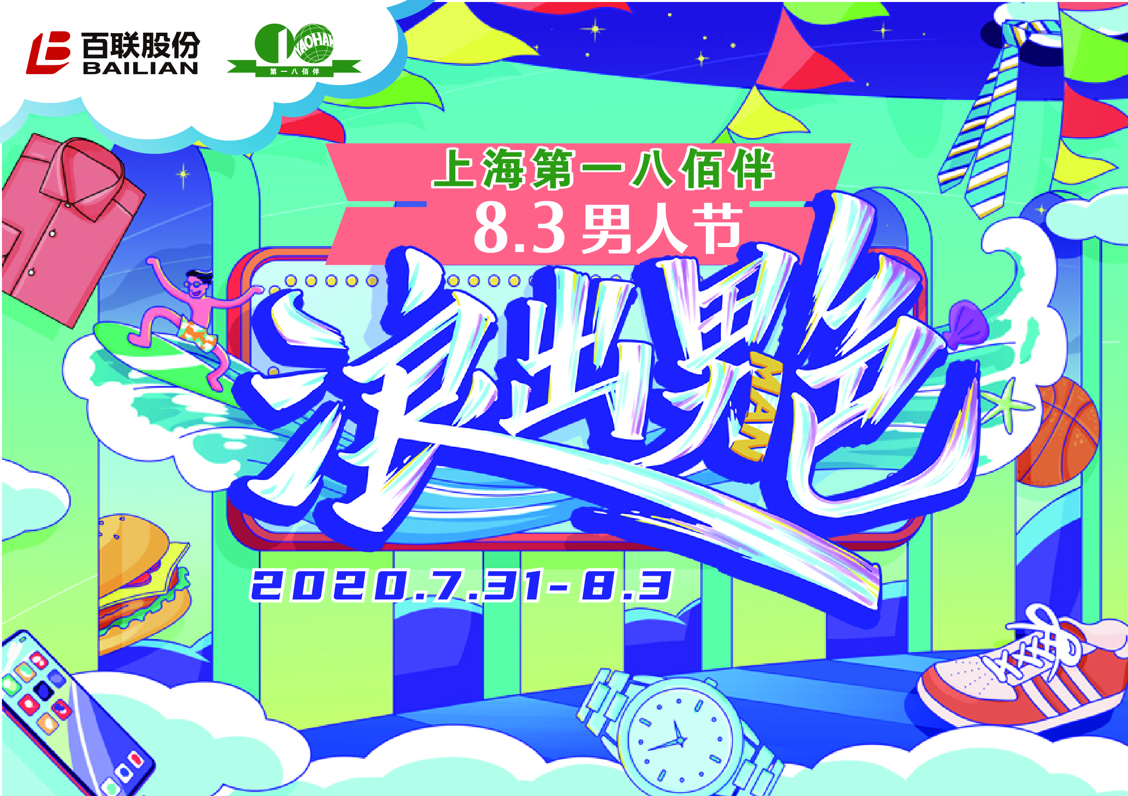 对于辛苦持家“亚历山大”的男士,疫情之后更加需要放松。作为本次i购季的重点活动之一,7月31日起百联旗下第一八佰伴将开展“8·3 男人节”活动,开启“浪出男色”的夏季消费狂欢。期间不仅有满额送大额券活动,还融合“夜太浪”夜间市集,让大家在“买买买”的同时放肆嗨玩,诸多趣味游乐设施和互动游戏将带领大家重拾童年乐趣,抛却烦恼。