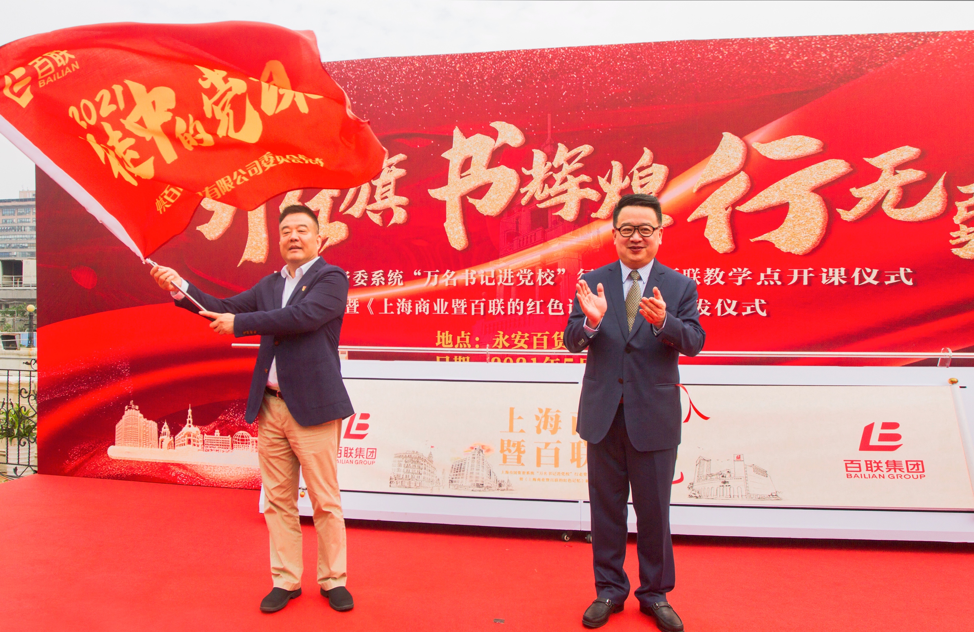 5月27日清晨,在上海解放72周年纪念日,百联集团党委在永安百货顶楼绮云阁举行以“升国旗 书辉煌 行无疆”为主题的《上海商业暨百联的红色记忆》(上中下)新书首发仪式暨上海市国资委系统“万名书记进党校”行走党课百联教学点开课仪式。推动党史学习教育热起来、活起来、深起来、实起来,进一步弘扬红色文化、感悟红色真理、传承红色基因、赓续红色精神,为建党一百年华诞献礼。