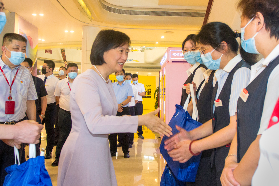 7月14日上午,集团党委副书记、总裁徐子瑛走访慰问百联川沙购物中心高温下坚守在一线辛勤工作的职工,并开展安全检查工作。徐子瑛为购物中心和物业管理的一线员工一一送上防暑慰问品和贴心的问候,鼓励他们认真做好迎峰度夏期间的各项工作。慰问检查后,徐子瑛听取了百联川沙工作汇报,充分肯定百联川沙近年来取得的成绩,并提出了加快公司契约化进度、对标“服务一流”标准、优化公司商品结构、做好人才培养工作的要求。面对集团的关心关怀,大家倍受鼓舞,坚定了公司上下战高温、斗酷暑,确保各项工作有条不紊开展的决心。