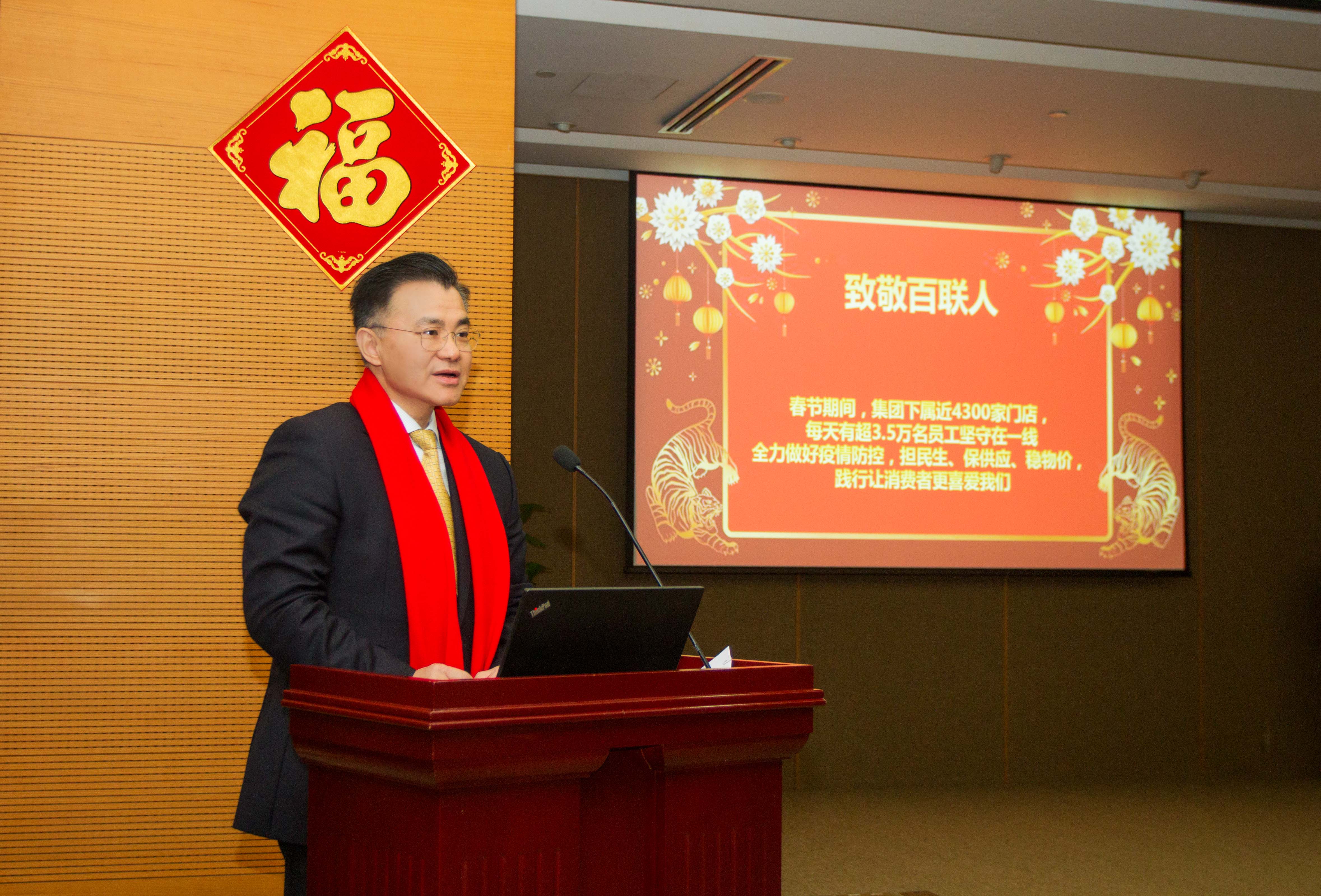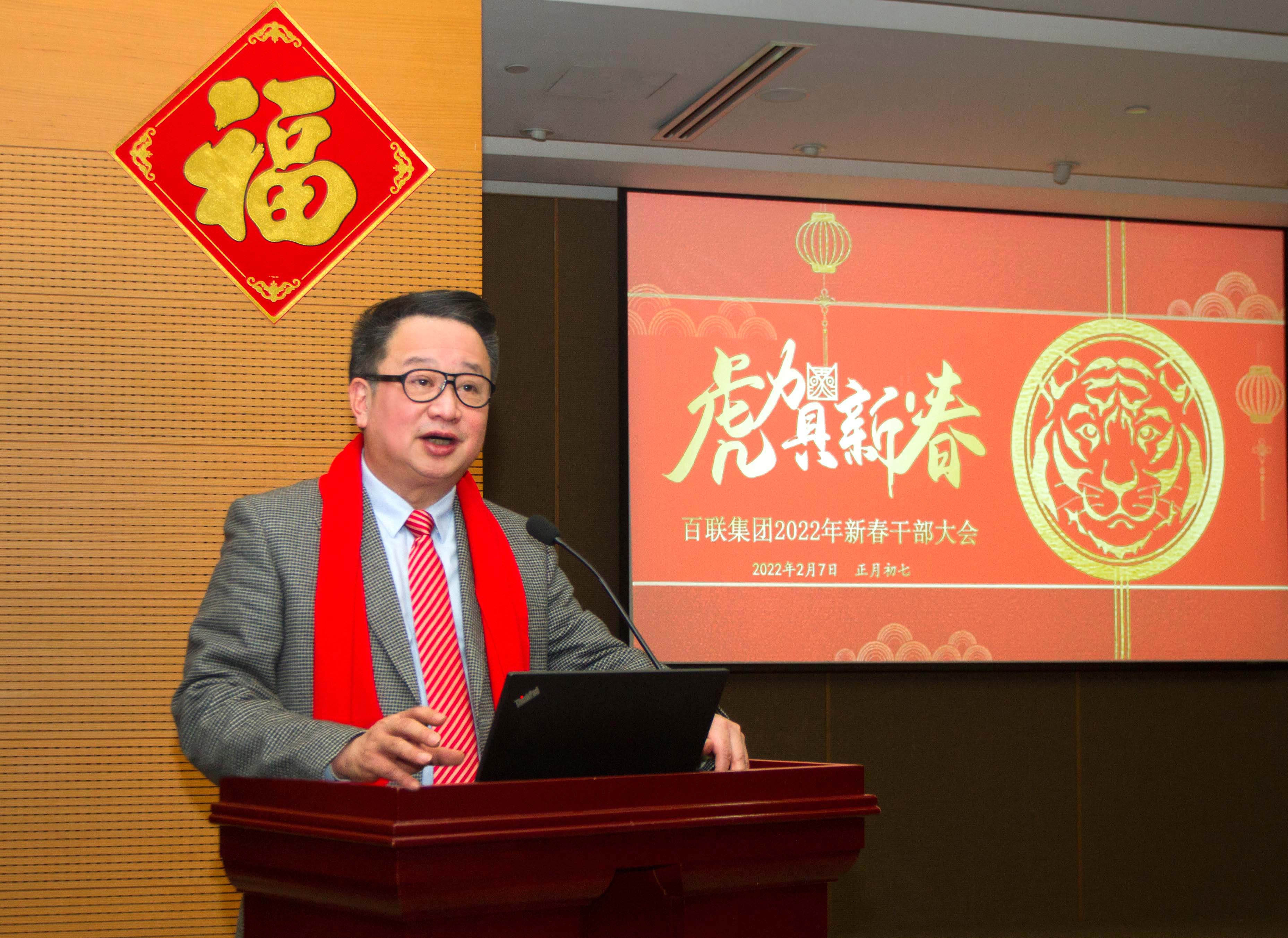 2月7日上午,农历虎年的第一个工作日,集团在百联大厦举行2022年新春团拜会。集团党委书记、董事长叶永明,党委副书记、总裁濮韶华分别致辞,集团监事会主席周平出席,党委副书记、工会主席秦青林主持。集团领导班子成员集体向大家拜年,恭祝百联全体干部员工新春快乐、身体健康、虎年大吉、事业兴旺!