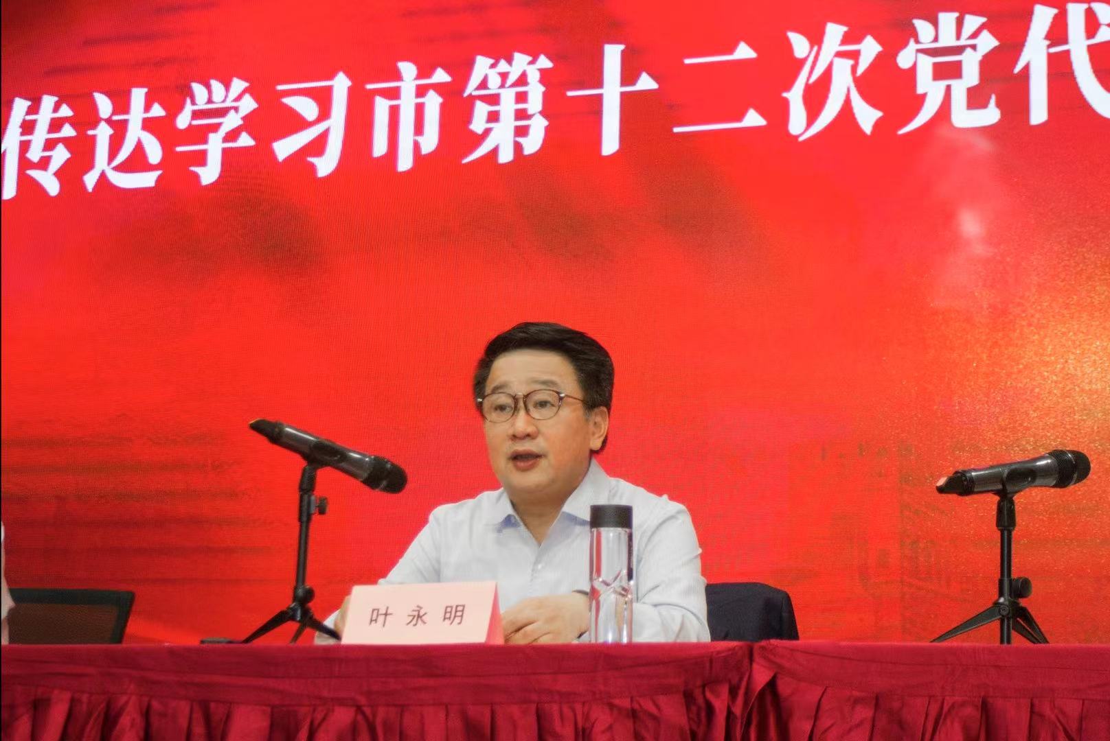 叶永明同志在传达市第十二次党代会精神时指出,市第十二次党代会是全市上下奋力拼搏取得“大上海保卫战”重大胜利,加快建设具有世界影响力的社会主义现代化国际大都市,向党的第二个百年奋斗目标进军的关键时期,召开的一次具有里程碑意义的大会。大会认为,李强同志代表十一届市委所作的报告,把学习贯彻习近平总书记考察上海重要讲话精神作为全部工作的鲜明主题和贯穿始终的突出主线,是一份高举旗帜、牢记嘱托、砥砺奋进、继往开来的政治宣言,也是一份激励全市上下奋进新征程、勇担新使命、谱写新篇章、再创新奇迹的行动纲领。学习宣传贯彻党代会精神是当前和今后一个时期的重大政治任务,各级党组织和广大党员干部要提高政治站位,切实把党代会精神学习好、宣传好、贯彻好、落实好。