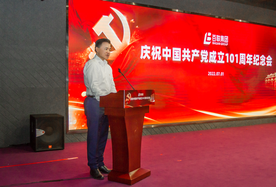 7月1日上午9时,百联集团党委在百联科创中心六楼会议室召开庆祝中国共产党成立101周年纪念会。集团党委书记、董事长叶永明传达上海市第十二次党代表大会精神并作讲话。集团党委副书记、总裁濮韶华主持。