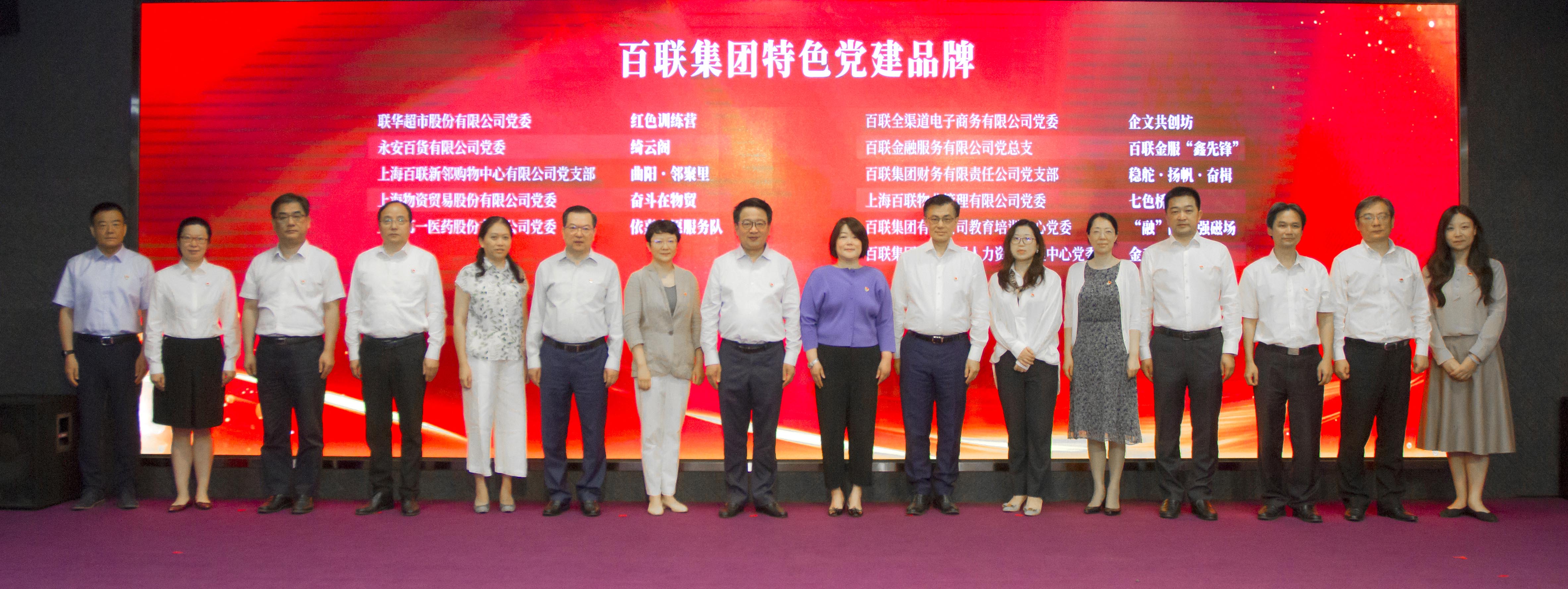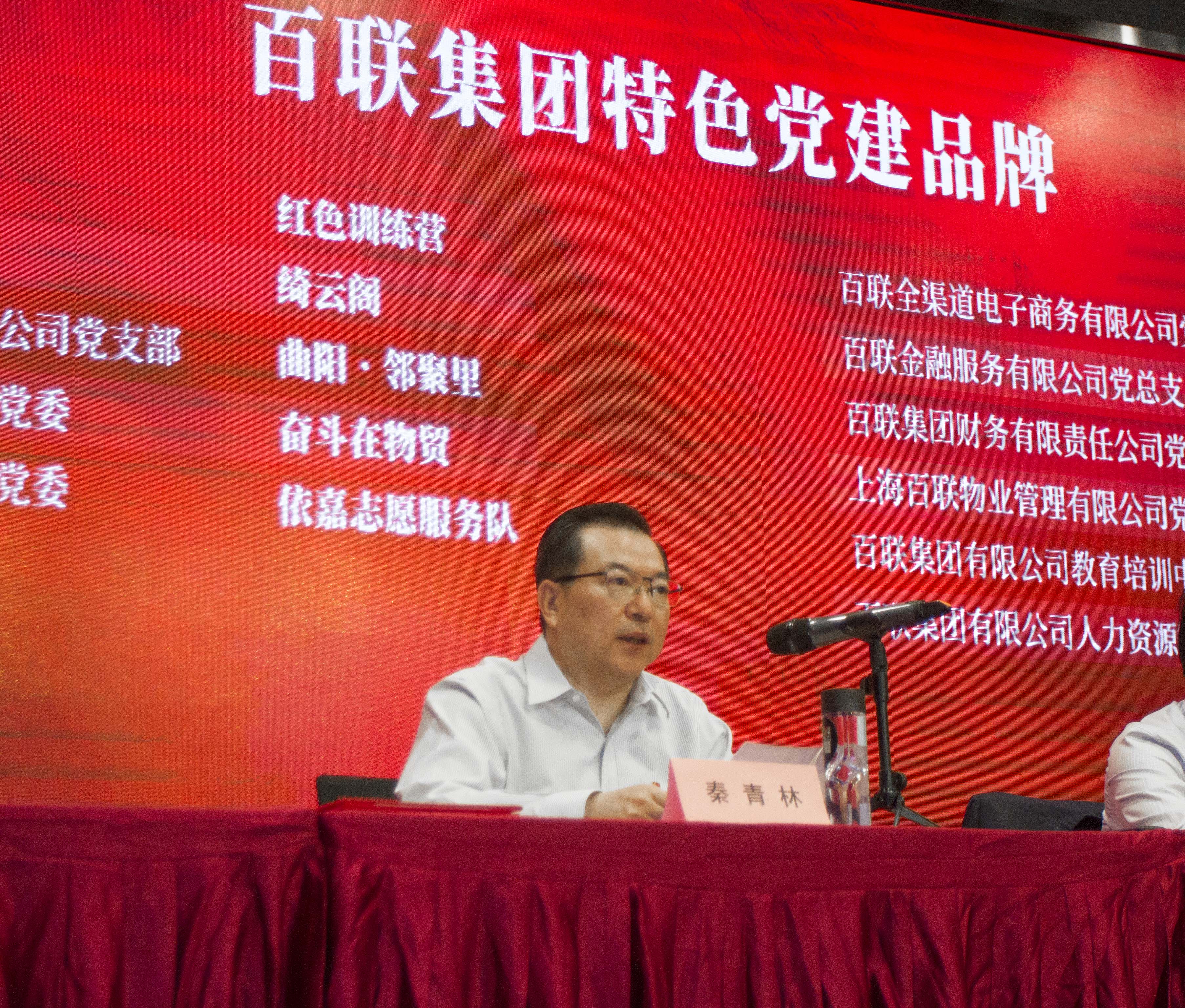 会上,举行了“百联集团党建工作平台2.0”上线仪式,集团党委副书记、工会主席秦青林介绍了集团党建工作平台2.0的建设情况,集团党委班子成员与联华股份、百联股份、上海证券、物贸股份、第一医药五家二级公司党委书记共同启动平台上线;命名了“百联集团特色党建品牌”。秦青林同志宣读《关于命名“百联集团特色党建品牌”的决定》,集团党委班子成员为联华股份党委“红色训练营”、永安百货党委“绮云阁”等11家党组织颁发特色党建品牌荣誉证书。
