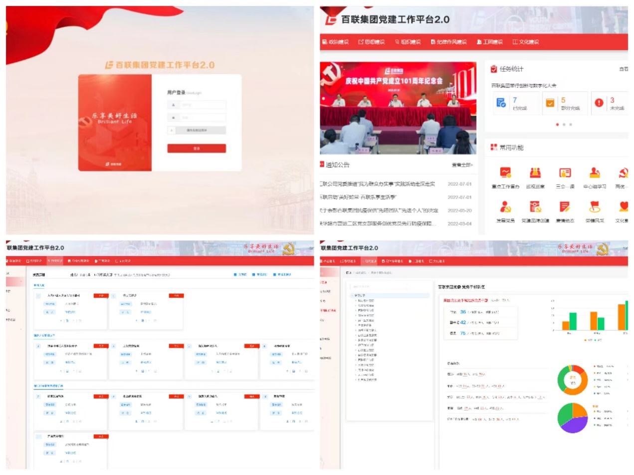 按照新形势下中央、市委以及市国资委党委对国企党建的新任务新要求,顺应互联网、数字化发展趋势,为进一步提升百联党建管理信息化、规范化水平,作为百联基层党建的创新成果,2022年7月1日,百联集团党建工作平台2.0正式上线,向党的101周年华诞献礼。