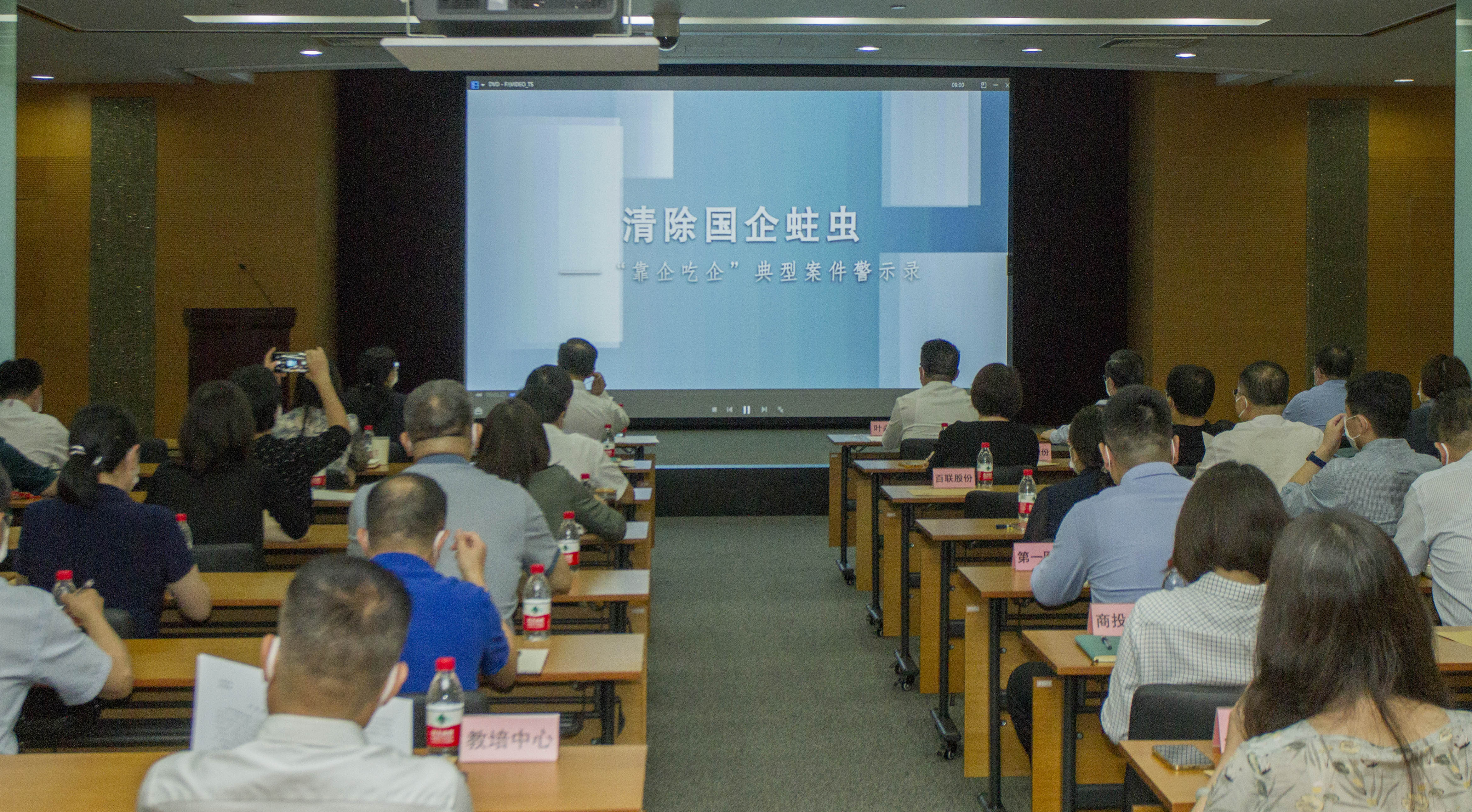 会上,与会同志集体观看了廉政教育专题片——《清除国企蛀虫——“靠企吃企”典型案件警示录》。