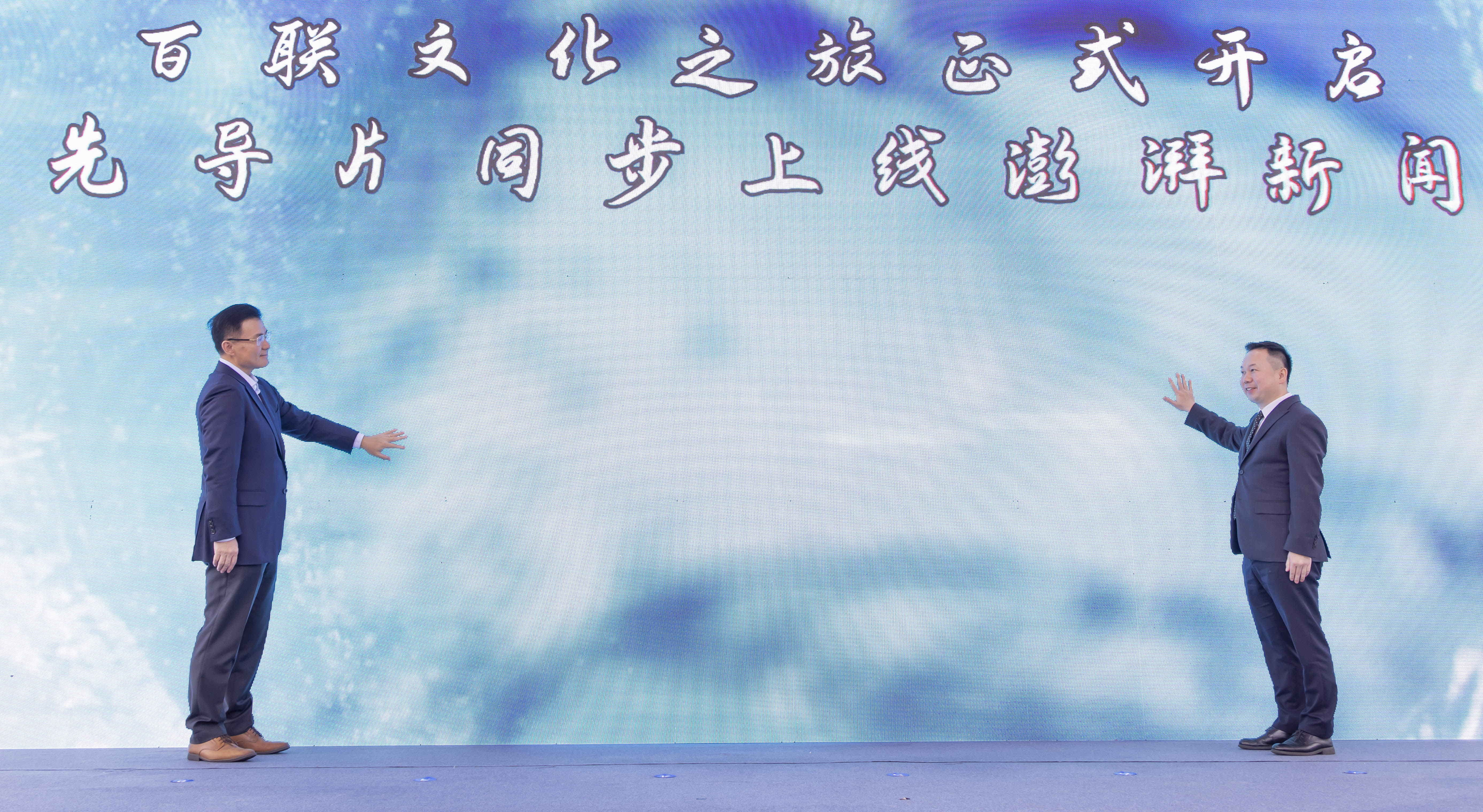 图:集团党委副书记、总裁濮韶华和澎湃新闻社总编辑刘永钢共同发布《魔都漫步:打卡商业新空间》先导片