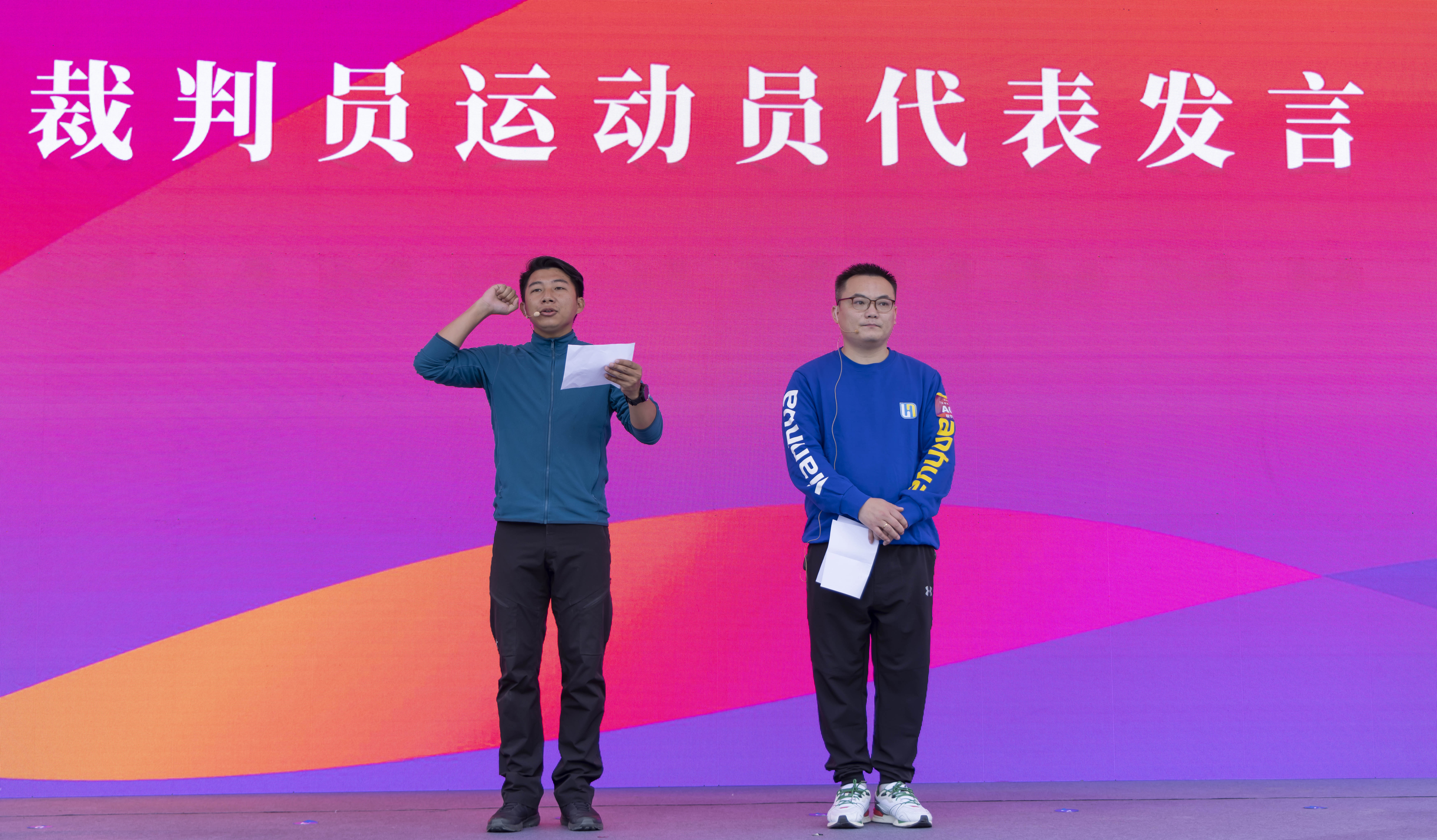 图:裁判员和运动员代表发言
