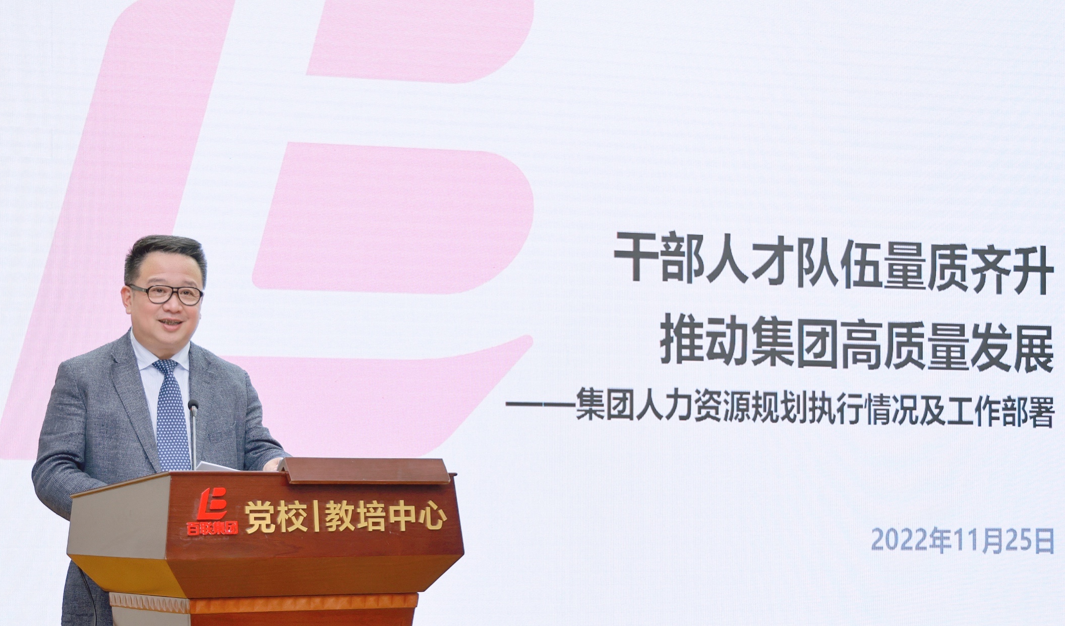 11月25日下午,集团在百联教培中心报告厅召开2022年人才工作大会。集团党委书记、董事长叶永明出席并讲话,集团党委副书记、总裁濮韶华等集团党政领导班子成员出席大会。集团党委副书记、工会主席秦青林主持大会。