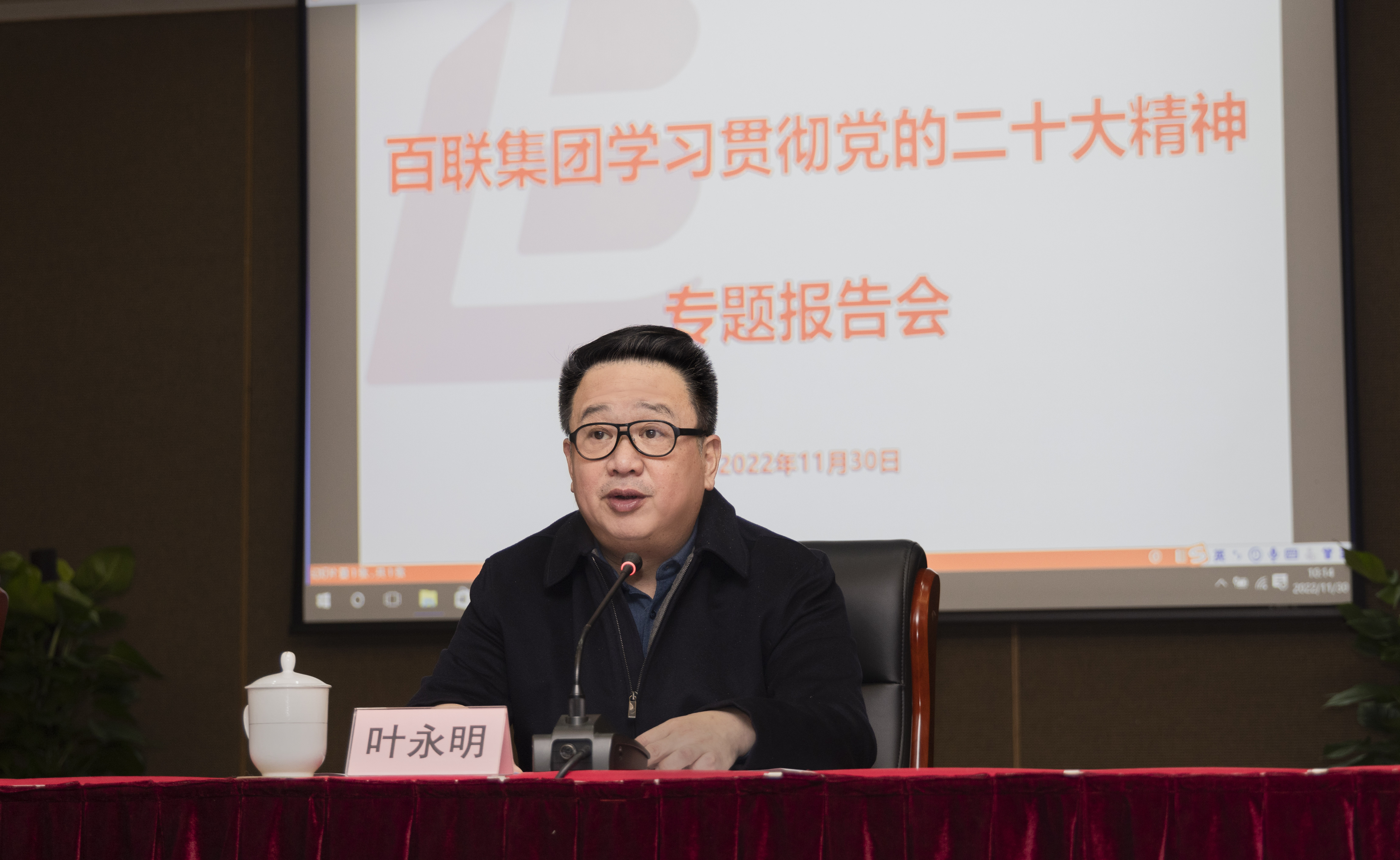 11月30日上午,集团党委举办学习贯彻党的二十大精神宣讲会,宣讲会由集团党委书记、董事长叶永明主持。