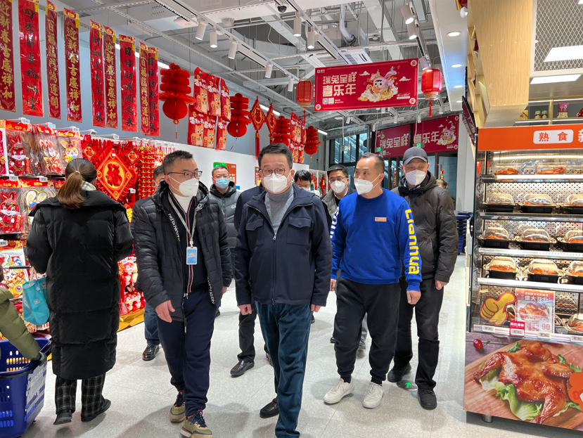 2022年12月30日下午,集团党委书记、董事长叶永明先后走访第一医药商店、三联亨得利总店、联华超市新闸店、世纪联华淞虹路店、第一八佰伴等门店调研指导防疫保供工作,慰问一线门店干部职工,叮嘱企业相关领导关心职工疫情防护,确保职工身心健康,尽最大努力保障市民所需,维护市场稳定。集团副总裁孙伟及相关二级公司负责人等参加走访调研。