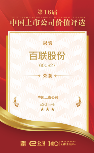 近日,由中国《每日经济新闻》主办的中国资本市场年度荣誉盛典——“2022第十二届中国上市公司口碑榜”重磅发布,百联股份凭借前瞻的战略引领、日益优化的公司治理结构,荣获“最佳上市公司董事会”奖。