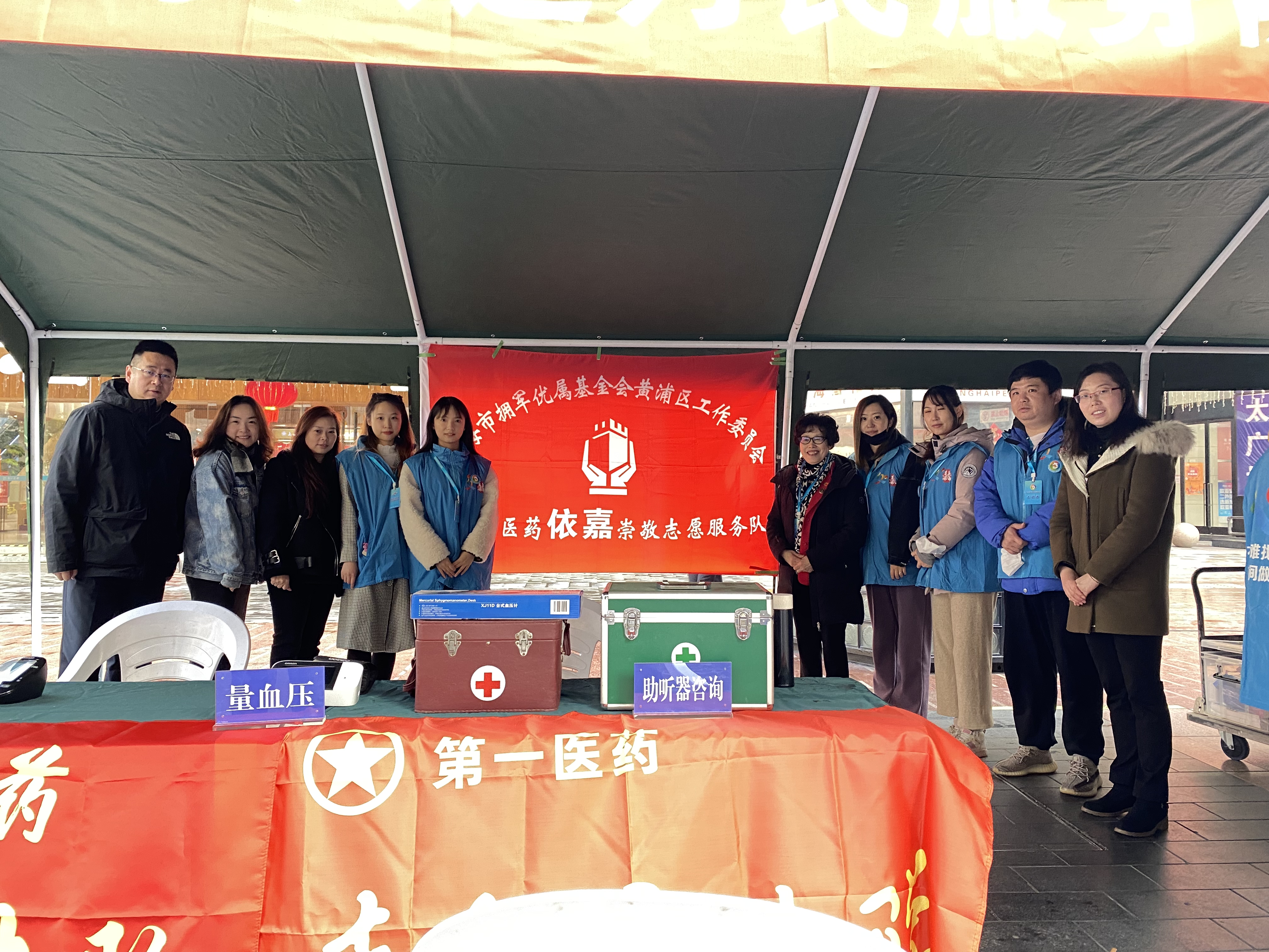 活动现场绿色的迷彩大棚一路绵延近200米,撑起的不仅是风雨无阻的志愿者服务活动,而是雷锋精神薪火相传传守的初心。第一医药的志愿者们为过往市民提供测量血压、检测体重、检测血氧饱和度,并提供用药咨询等服务。获知今日活动的开展,原本动迁前住在商店周边、一些自称“药粉”的老年居民纷至沓来。他们感慨地表示:一早赶来是为了重拾以往被服务的温暖,希望“药粉们”的举动能激励第一医药把“为民服务”无限地继续下去。2个多小时的服务现场共计接待咨询及检测者近百人次。
