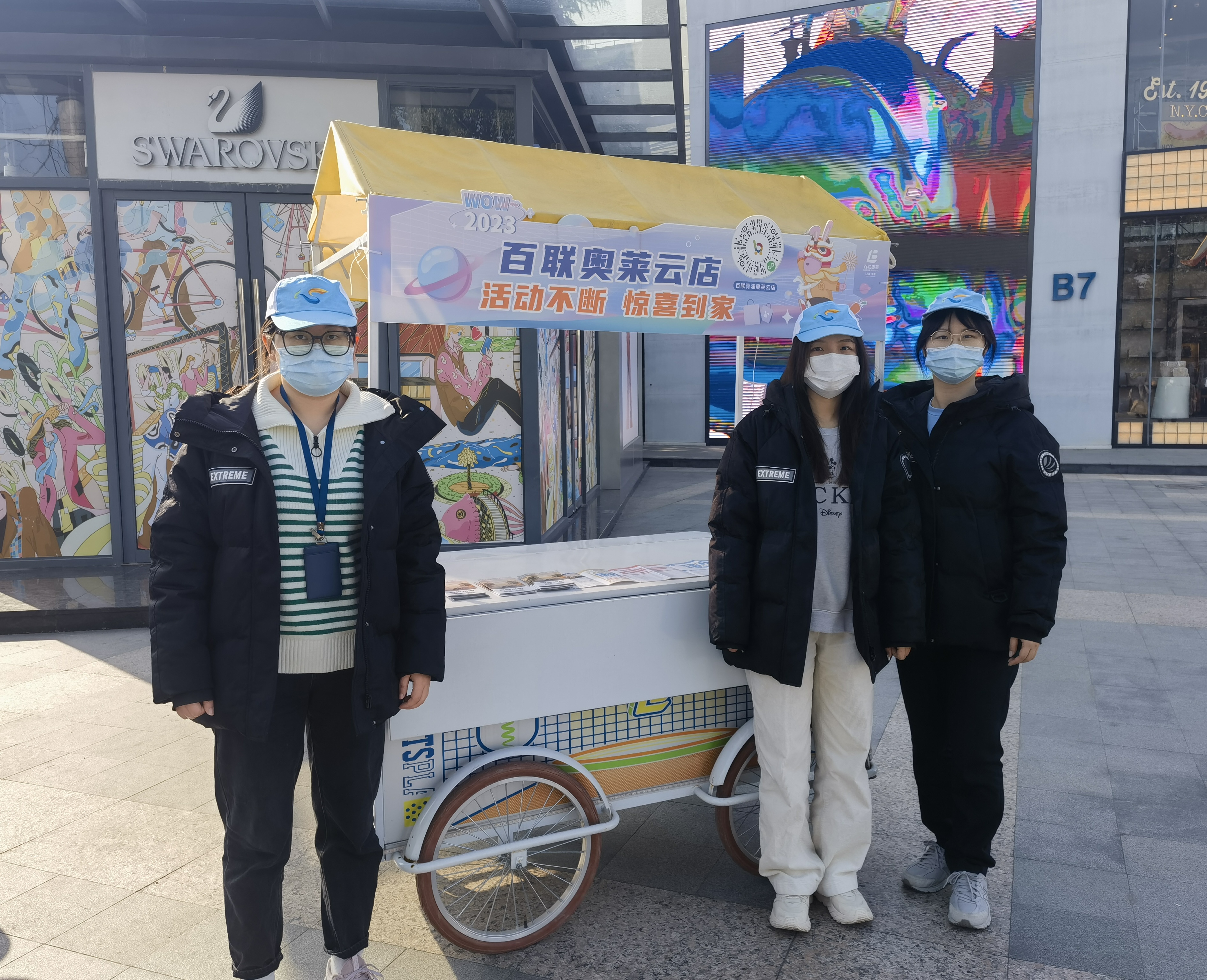 青浦奥特莱斯在广场设置移动咨询站,发动团员青年在咨询站点轮班值守,面对顾客提出的各类问题,团员们一一细心解答,发放导购图并提供路线指引,为顾客提供 “零距离”贴心导购服务。