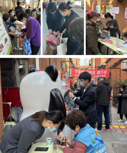 妇女用品商店联合瑞成社区、瑞兴居委举办“学雷锋 树新风 践行动”志愿便民服务,商店全体党员青年积极参与,在现场进行旧衣回收、发放商店“花若盛开 蝴蝶自来”三八节活动优惠券,并向每位旧衣回收活动的捐赠者赠送环保袋。
