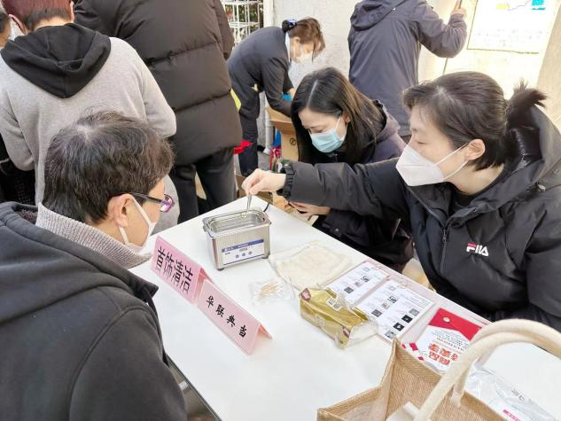 华联典当组织威海店员工志愿者主动参与同创共建社区——顺天村居民区党总支开展的“传承雷锋精神,践行志愿服务”志愿服务活动,为社区及周边居民提供免费清洗首饰和讲解首饰保养“小妙招”等专业服务,广受居民的欢迎。