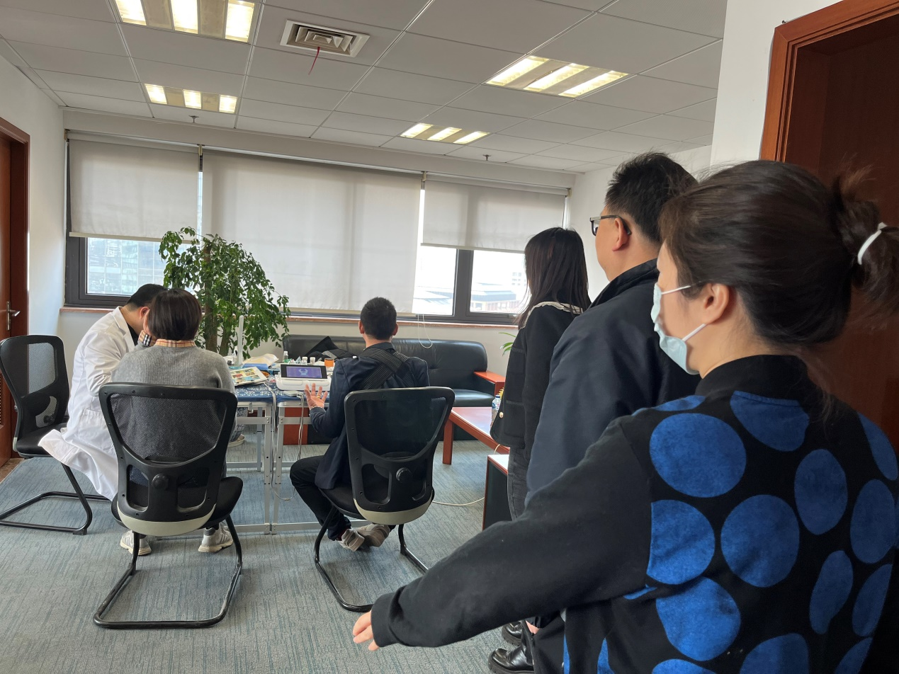 百联房产团员青年自发组成了一支志愿服务队伍,主动协助公司策划组织好“中医健康上门义诊活动”,收拾整理出一间空置办公室作为中医医师的“诊疗间”,联系医院做好医生出诊的对接服务,积极为前来问诊的公司、兄弟企业及楼宇租户职工做好预约引导工作,安排人员分散时段有序就诊。