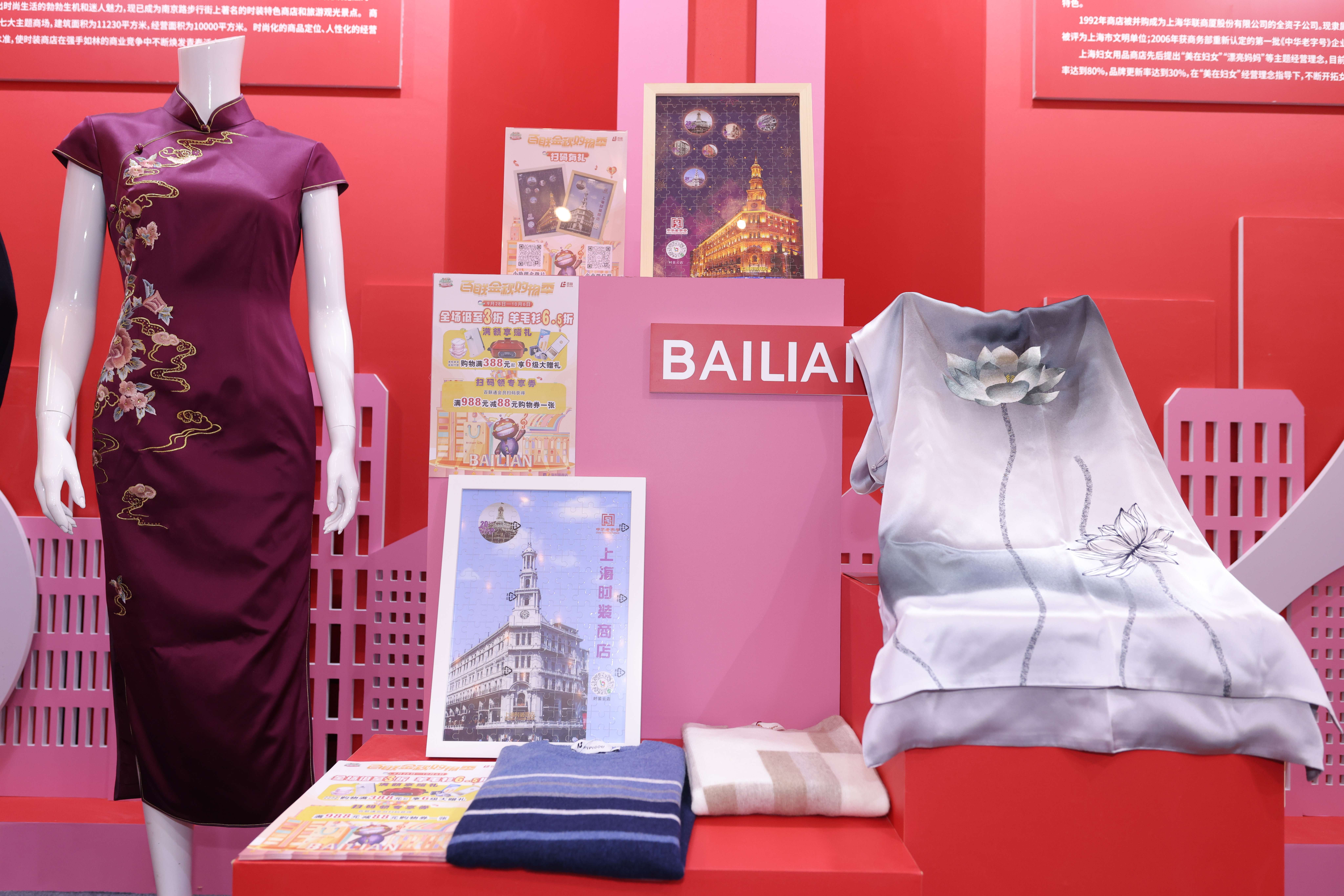 百联股份展区内,永安百货105周年摩登打卡区,以复古歌剧院橱窗,彰显“百老汇感”老品牌摩登范,吸引了众多到场观展的市民游客纷纷驻足留影,打卡区人气爆棚;第一百货、妇女用品商店、时装商店的联合展区以老字号特色建筑剪影墙凸显经典场景下的购物氛围感。现场的多元互动直面消费者,宣传了老字号企业的焕新风采。第一百货推出了以建筑外观为特色的拼图相框等限定周边礼品、妇女用品商店IP“囡囡”与消费者进行现场互动。同时,永安香、永安百货IP瑞狮等多款经典衍生商品也在展会中与广大消费者见面。时装商店则带来了凸显魔都特色的“今典旗袍”“上海故事”等特色时装类商品,更有购物好礼赠送。