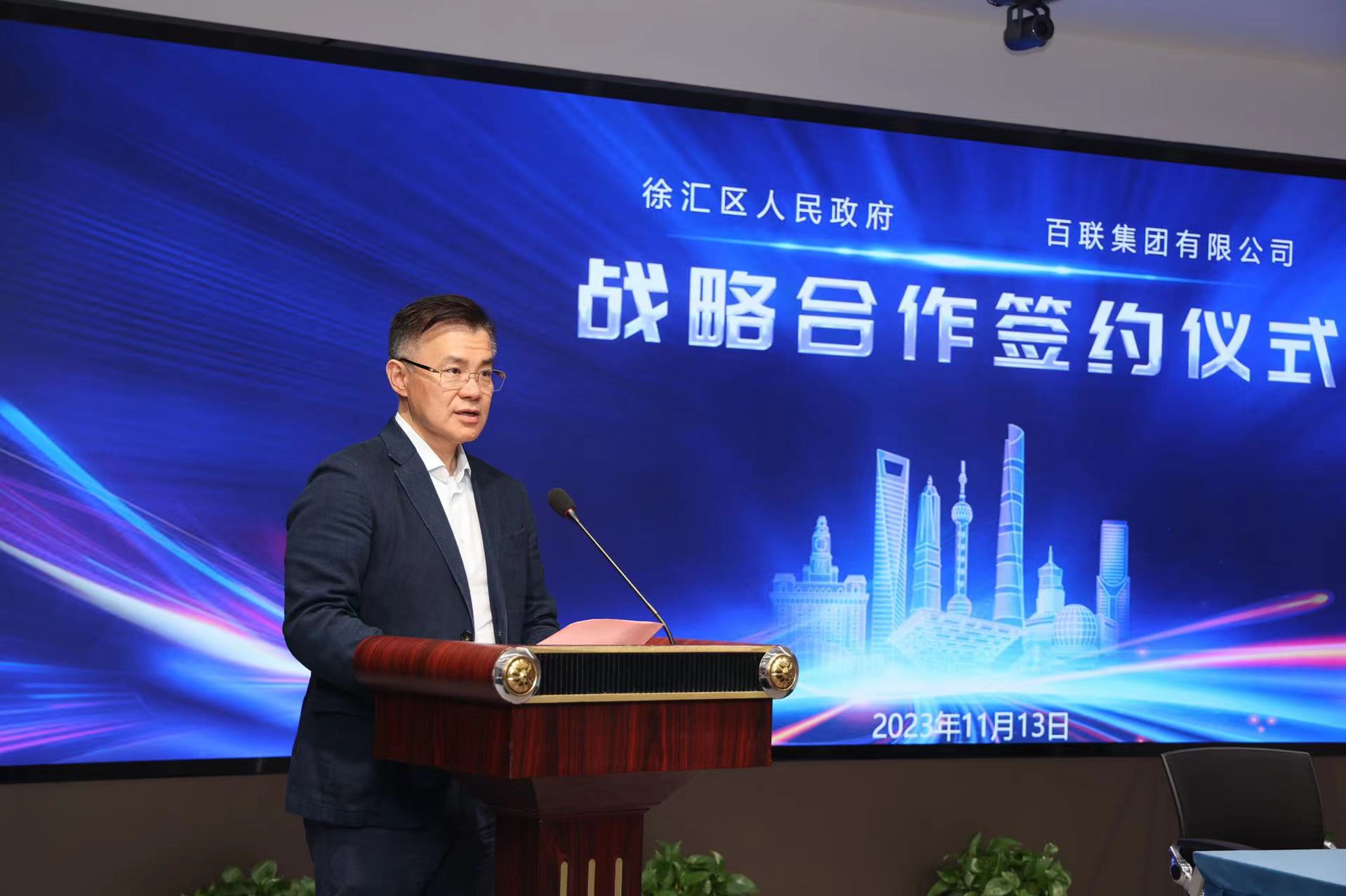11月13日下午,百联集团与徐汇区政府签署战略合作框架协议。徐汇区委副书记、区长钟晓咏,百联集团党委书记、董事长叶永明出席签约仪式并讲话,百联集团党委副书记、总裁濮韶华主持签约仪式。徐汇区副区长高世昀、百联集团副总裁孙伟分别代表双方签署战略合作协议。