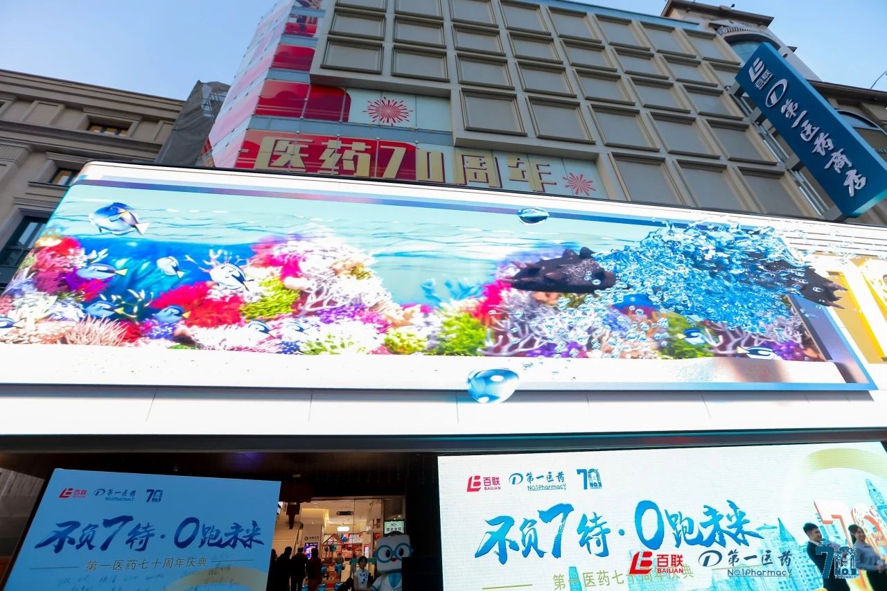 仪式当天,第一医药商店的裸眼3D大屏同步呈现震撼且趣味十足的传统参茸滋补产品宣传画面,吸引了众多市民和游客朋友驻足观赏。