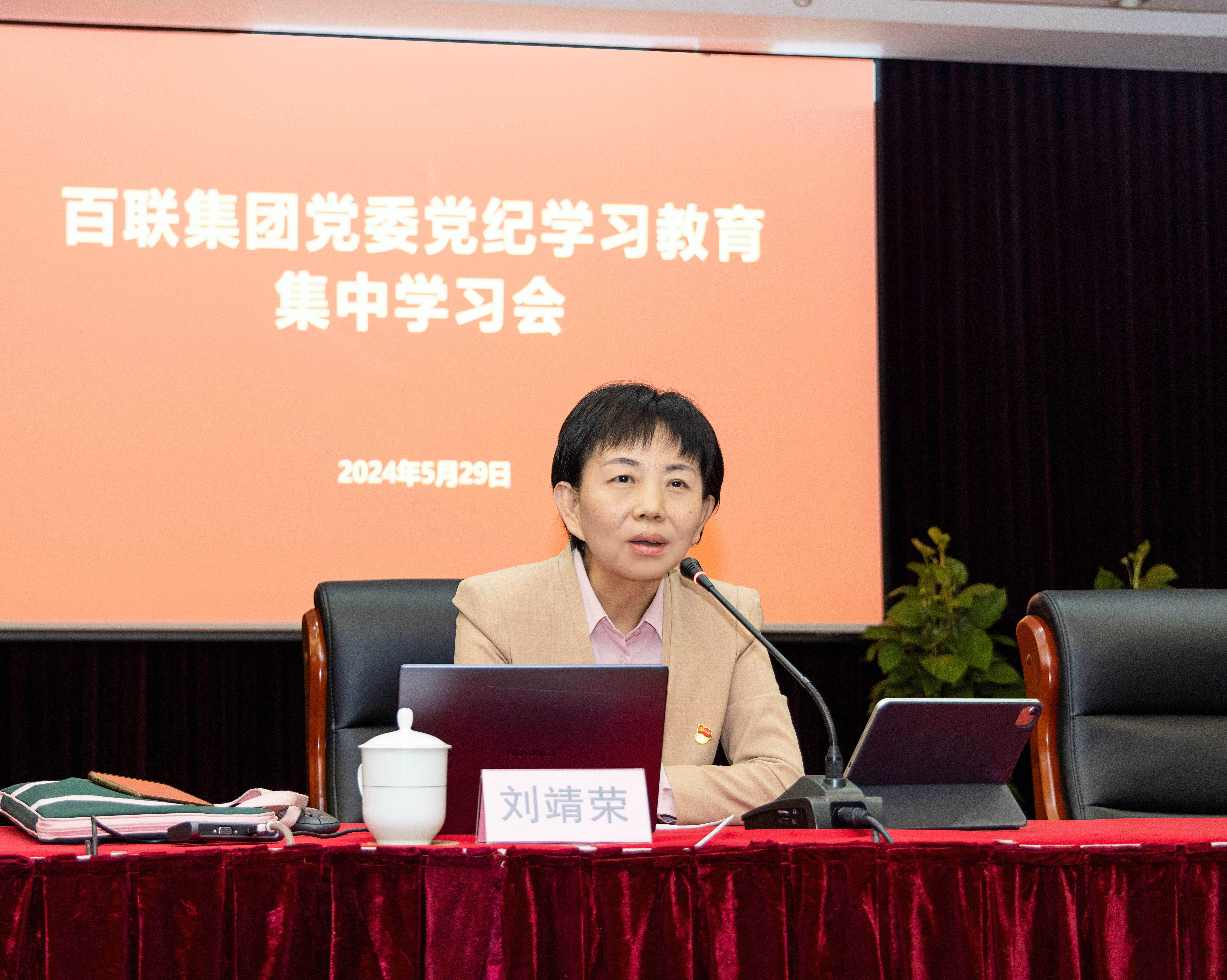 为扎实推进党纪学习教育走深走实,充分发挥警示教育作用,促进集团系统党员干部学纪、知纪、明纪、守纪,5月29日下午,百联集团党委召开党纪学习教育集中学习会暨党纪警示教育会。会议分两场进行,由集团党委书记、董事长叶永明主持。第一场邀请市纪委监委驻市国资委纪检监察组副组长刘靖荣作专题辅导报告;第二场是党纪警示教育暨专题纪律党课,叶永明结合集团系统近年来发生的部分反面典型案例,带头为党员干部上了一堂以“强化规矩意识,严守纪律底线,以忠诚干净担当护航集团高质量发展行稳致远”为题的纪律党课。