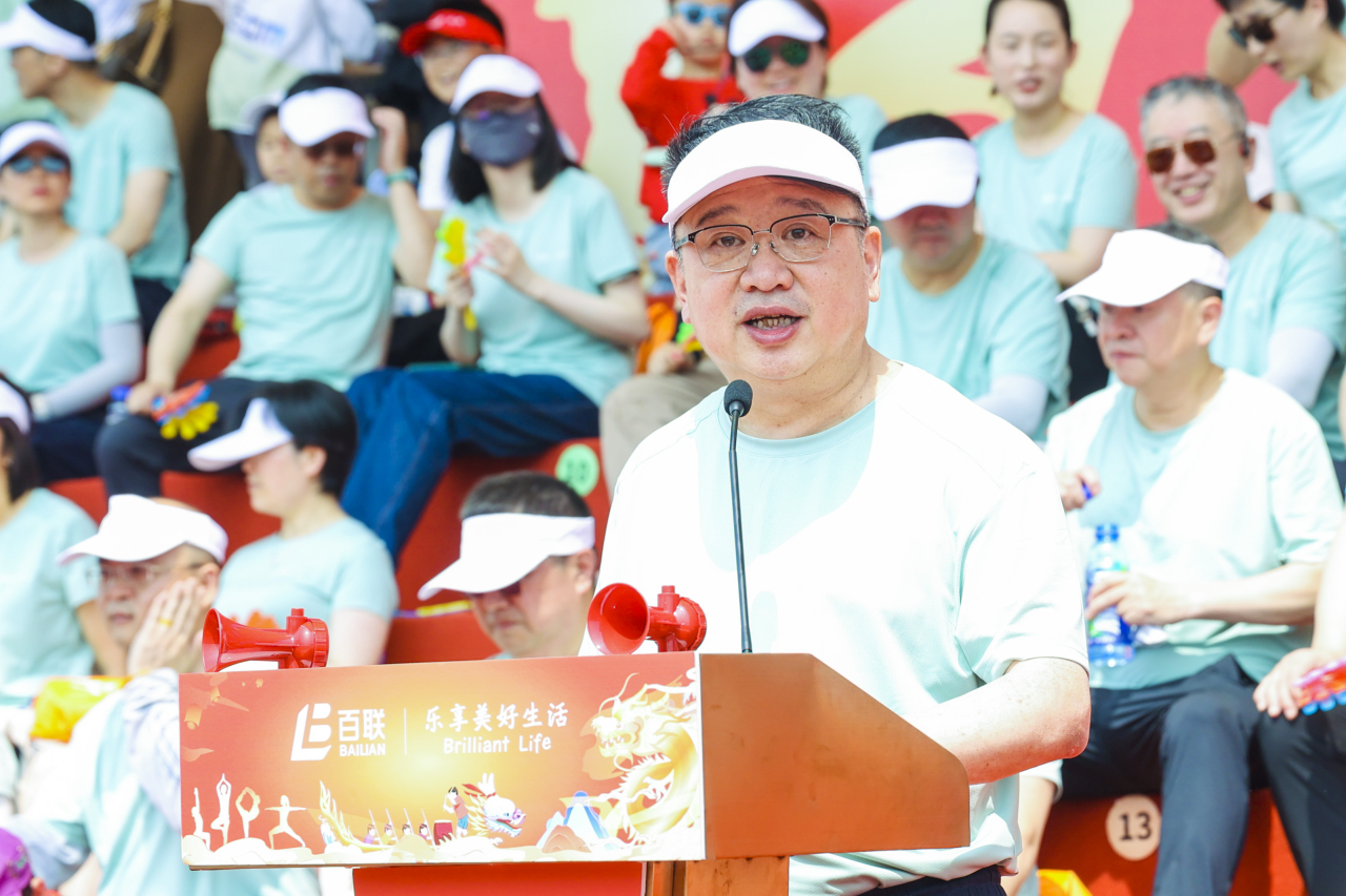 叶永明为运动会致辞。他指出,本次运动会,既是检验集团文化建设成果、展现百联人良好精神风貌的一次盛会,更是集团上下进一步统一思想、坚定信心、加油鼓劲的一次盛会。2024年,是新中国成立75周年,也是实现“十四五”目标任务的关键一年。按照市委、市政府对百联的新定位、新要求,“十四五”期间,百联集团要成为上海国际消费中心城市建设的排头兵、商业空间和内容创新发展的先锋队、商业网络托底民生保障的主力军,加快打造以“一核三柱”为主业、产融协同为特色的现代商业产业集团,需付出艰苦而不懈的努力。