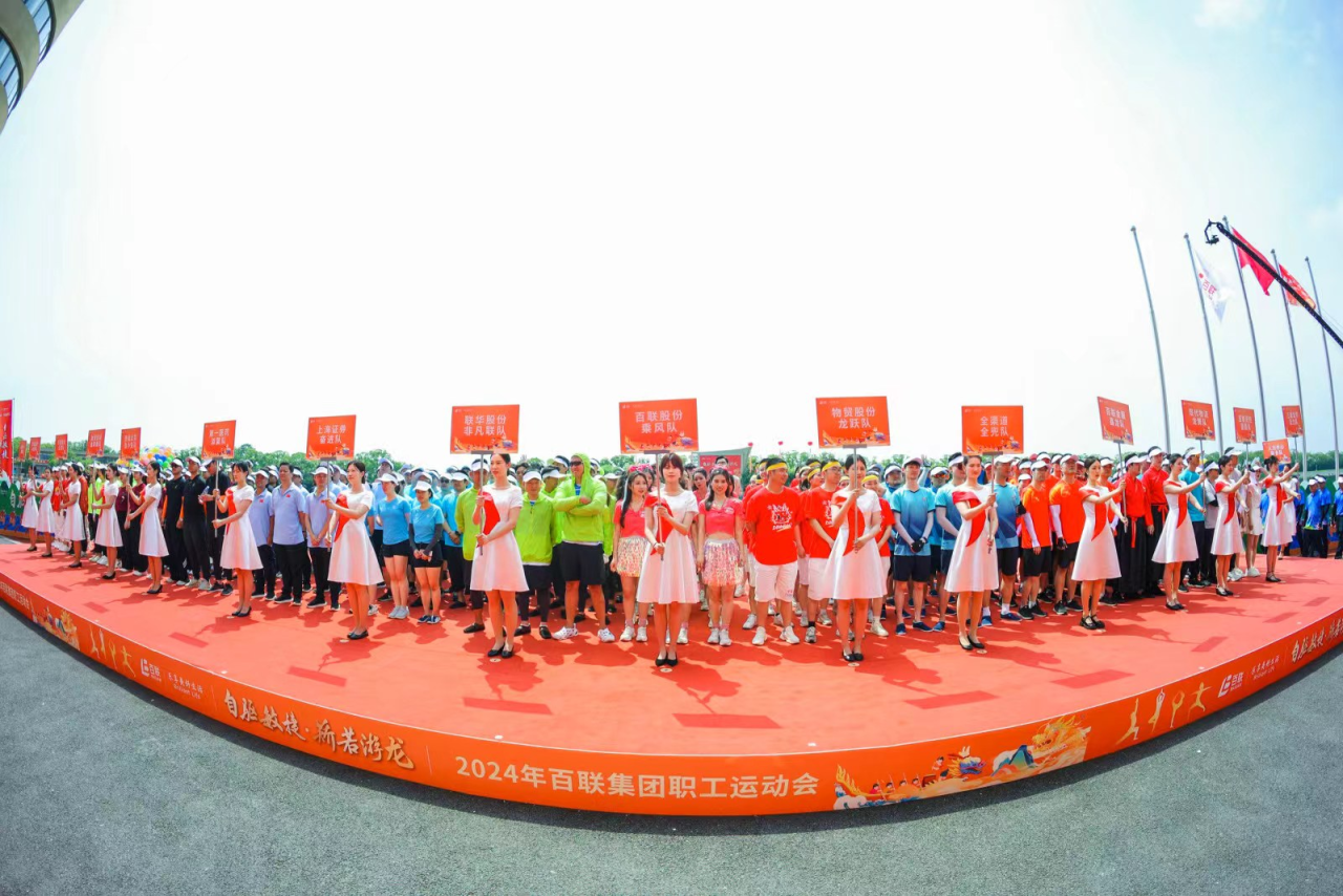赛龙舟是中华民族的传统习俗,承载着深厚的文化内涵与体育精神。正值上海市第四届市民运动会火热进行之际,为丰富职工文体活动,增强职工身体素质,进一步提升集团职工队伍的凝聚力和战斗力,6月8日,百联集团“自驱敏捷·矫若游龙”2024年职工运动会在上海水上运动中心举行。集团党委书记、董事长叶永明,党委副书记、总裁濮韶华等集团领导班子成员出席运动会。集团总部各部室主要负责人,各二级公司、中心及部分企业的党、政、工、团负责人,劳模先进、职工群众和各运动员代表近千人参加活动。本次运动会在 i 百联平台全程直播,由上海东方广播音乐台主持人李柯、百联全渠道员工栾翔担纲主持,龙舟赛由上海广播电视台五星体育频道主持人刘鹏全程解说。