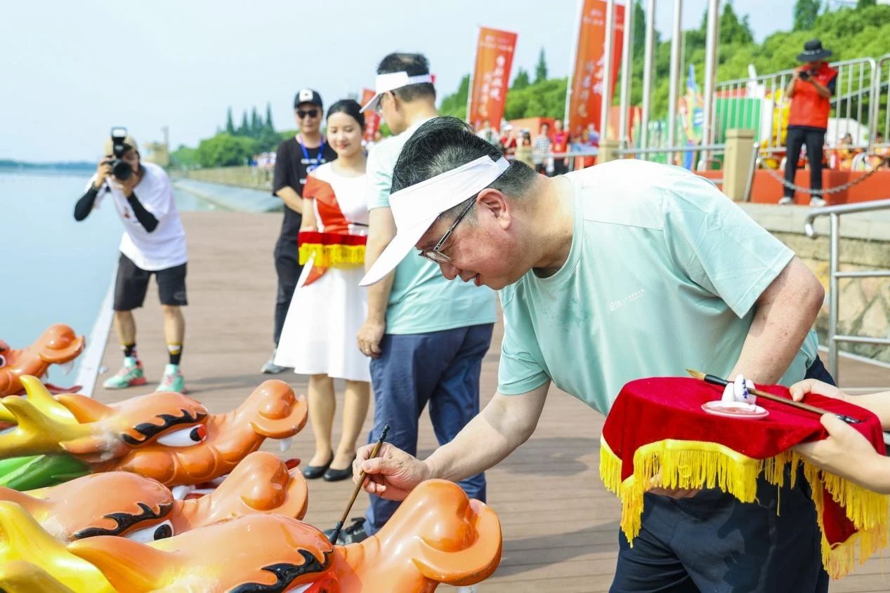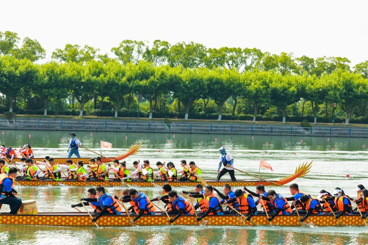 鼓声震天,龙舟竞渡。随着发令枪响起,宽阔的水面上,激昂的鼓点中,参赛队上演了一场场“速度与激情”的水上竞速。一条条龙舟如蛟龙出海,参赛队员们劈波斩浪、你追我赶,奋力划向终点。经过激烈角逐,4支参赛队伍脱颖而出进入决赛。集团领导叶永明、濮韶华为决赛龙舟点睛,激励他们努力拼搏、赛出水平、赛出风格!