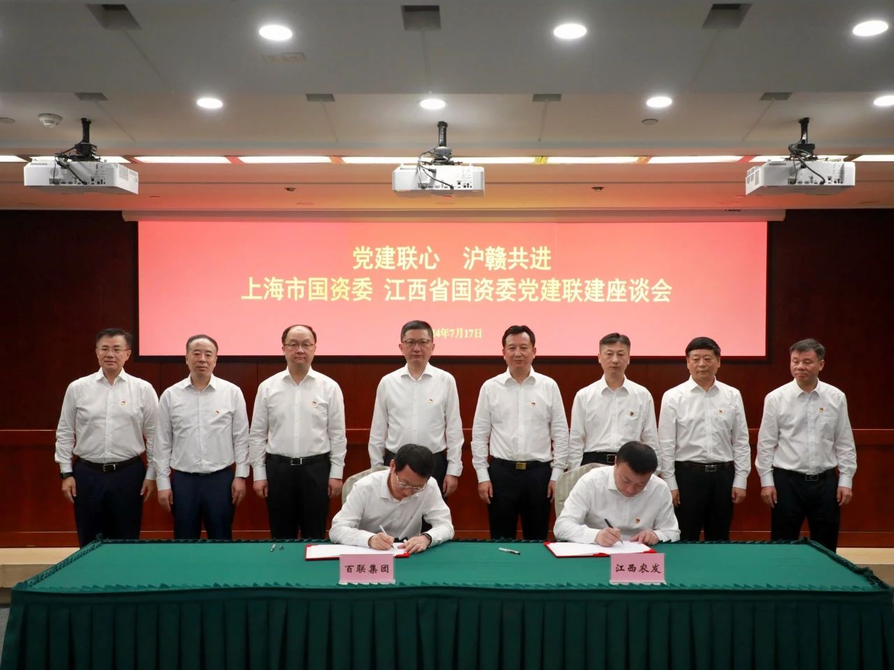 为贯彻习近平总书记关于长江经济带高质量发展的重要讲话精神,落实沪赣两地主要领导关于沪赣交流合作的工作要求,共同谋划做好服务长江经济带高质量发展大文章,7月17日上午,在上海市国资委与江西省国资委召开的“党建联心 沪赣共进”党建联建座谈会上,百联集团与江西铜业集团、江西省农业发展集团签署战略合作协议。