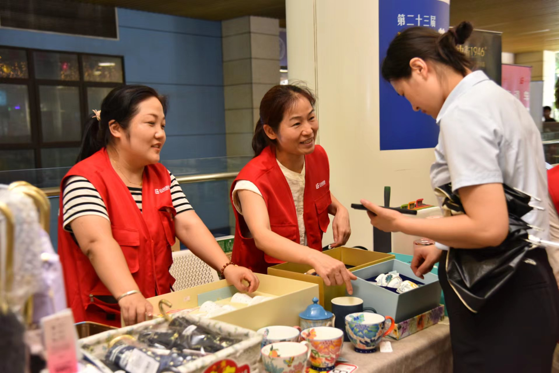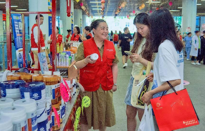 第一医药带来各类夏令时节优惠保健食品,并提供节气香袋。好美家在活动现场提供家装咨询服务。百联汽车提供了保养知识讲解,智己、凯迪拉克等新能源汽车展示。百联置业旗下华联典当提供融资变现咨询和黄金、银块、首饰等优惠商品。