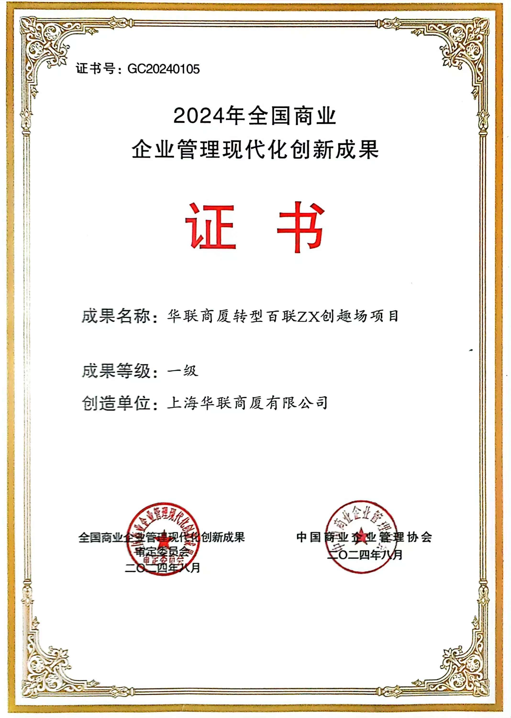 其中,经上海市商业企业管理协会推荐,百联集团旗下第一百货商业中心荣获“全国和谐商业企业”;上海三联(集团)有限公司荣获“全国商业企业文化优秀成果奖”;百联ZX创趣场转型项目荣获“全国商业企业管理现代化创新成果奖”。