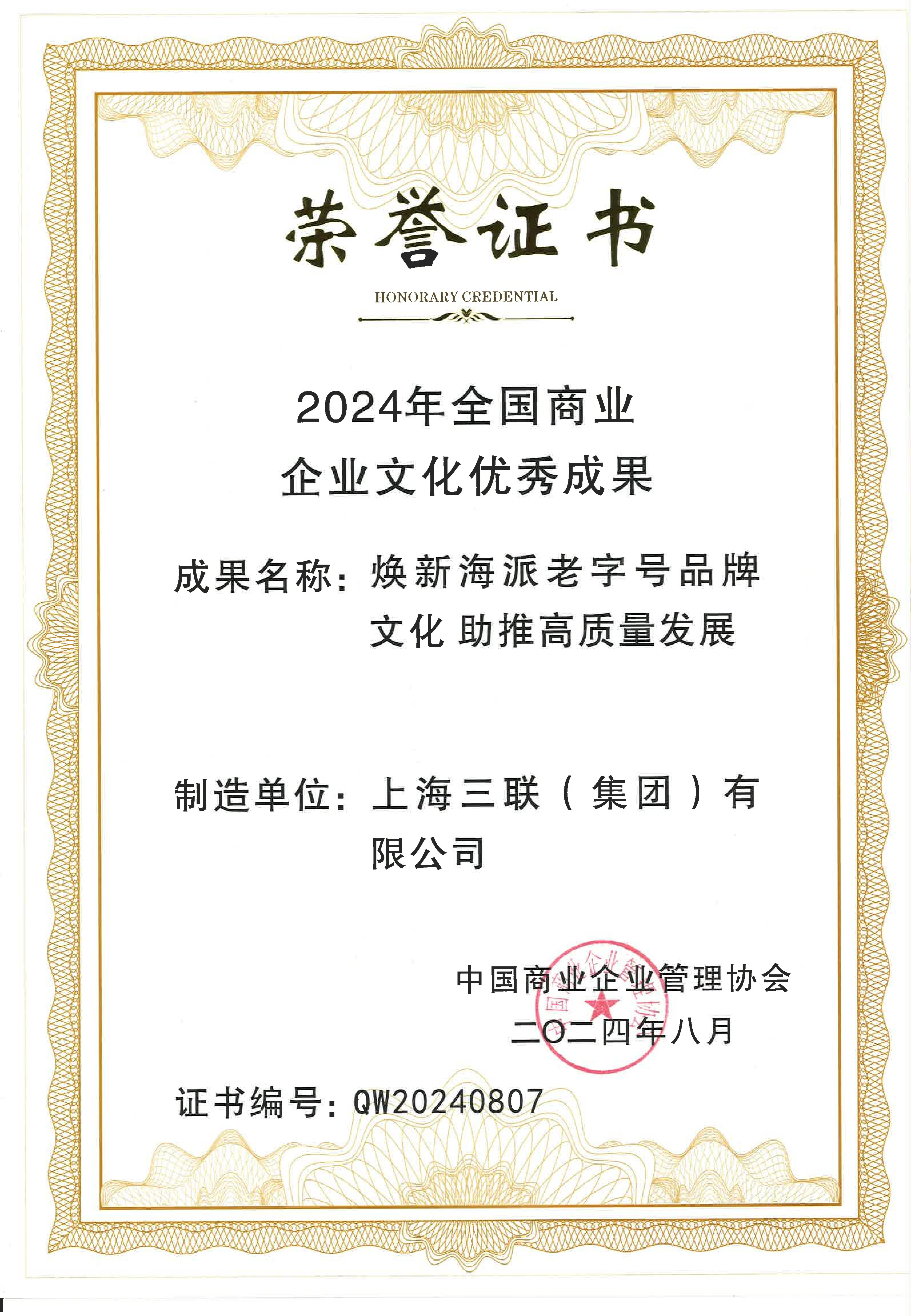 三联公司坚持“发展、创新、诚信、守则”的宗旨、“服务创造价值”的核心价值观和“坚定文化自信,弘扬工匠精神”的主旨,注重海派老字号特有的文化传承性与创新性,以崭新的品牌形象、丰富的产品选择、优质的服务体验,着力满足新时代消费者的需求。