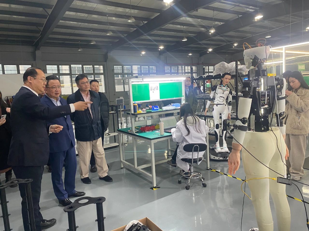 百联集团一行首先参观了张江机器人谷展厅,沉浸式体验了机器人领域的前沿科技。随后,走进A轮学堂学员企业——清宝机器人公司,听取清宝团队关于公司业务的详细介绍,参观其工厂车间,近距离感受现代化机器人生产线与先进制造工艺。清宝机器人的创新成果和实践经验为参访一行带来了诸多启发,双方就未来可能的合作方向进行了交流探讨。