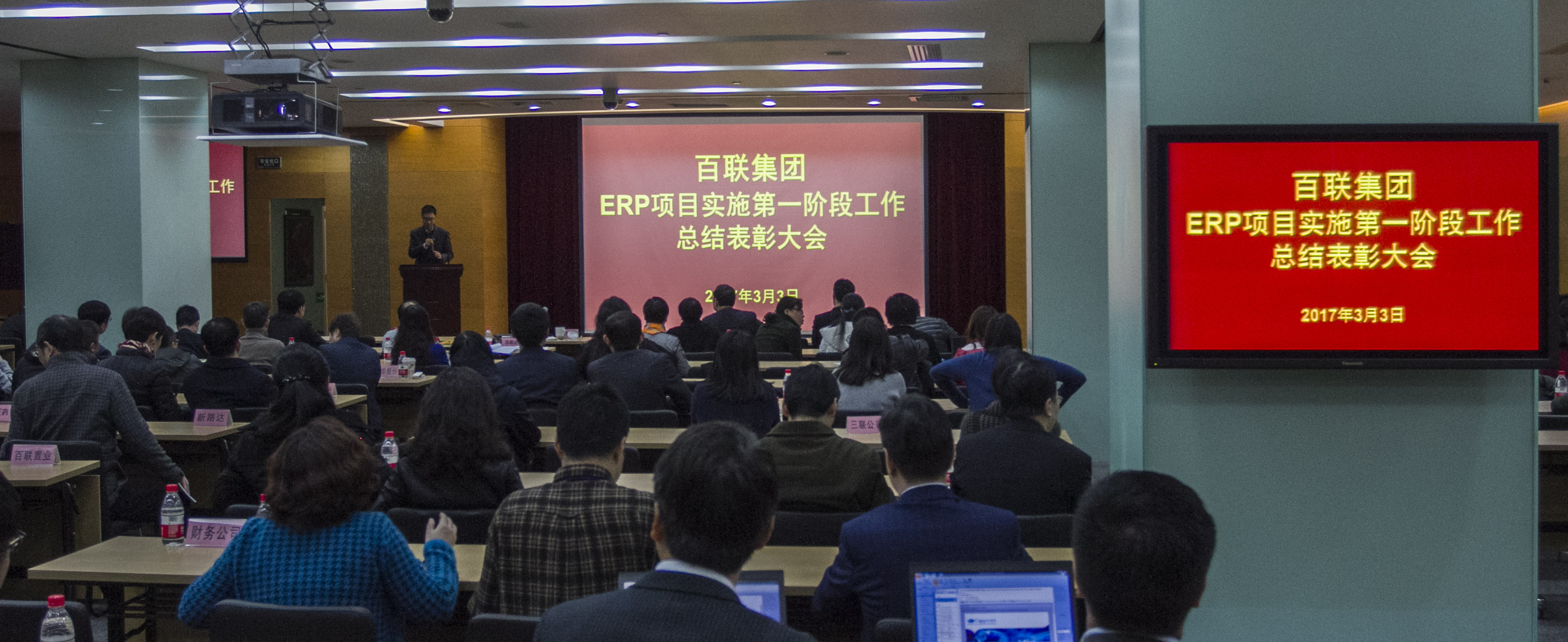 集团ERP项目第一阶段工作总结表彰大会于3月3日在百联大厦会议室召开,标志着历时一年的ERP项目第一阶段工作画上圆满句号,第二阶段工作随即展开。会议由集团首席信息官金麒主持,财务总监吕勇...2017-03-06了解更多 -