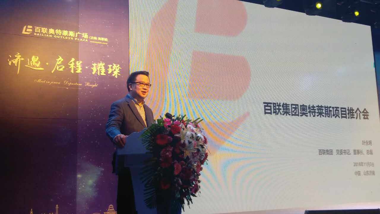 11月3日,百联奥特莱斯广场(济南·海那城)招商推介会在济南召开。集团党委书记、董事长、总裁叶永明等出席,众多国际知名品牌商代表参加会议。 会上,叶永明介绍了百联集团“十三五规划...2016-11-07了解更多 -