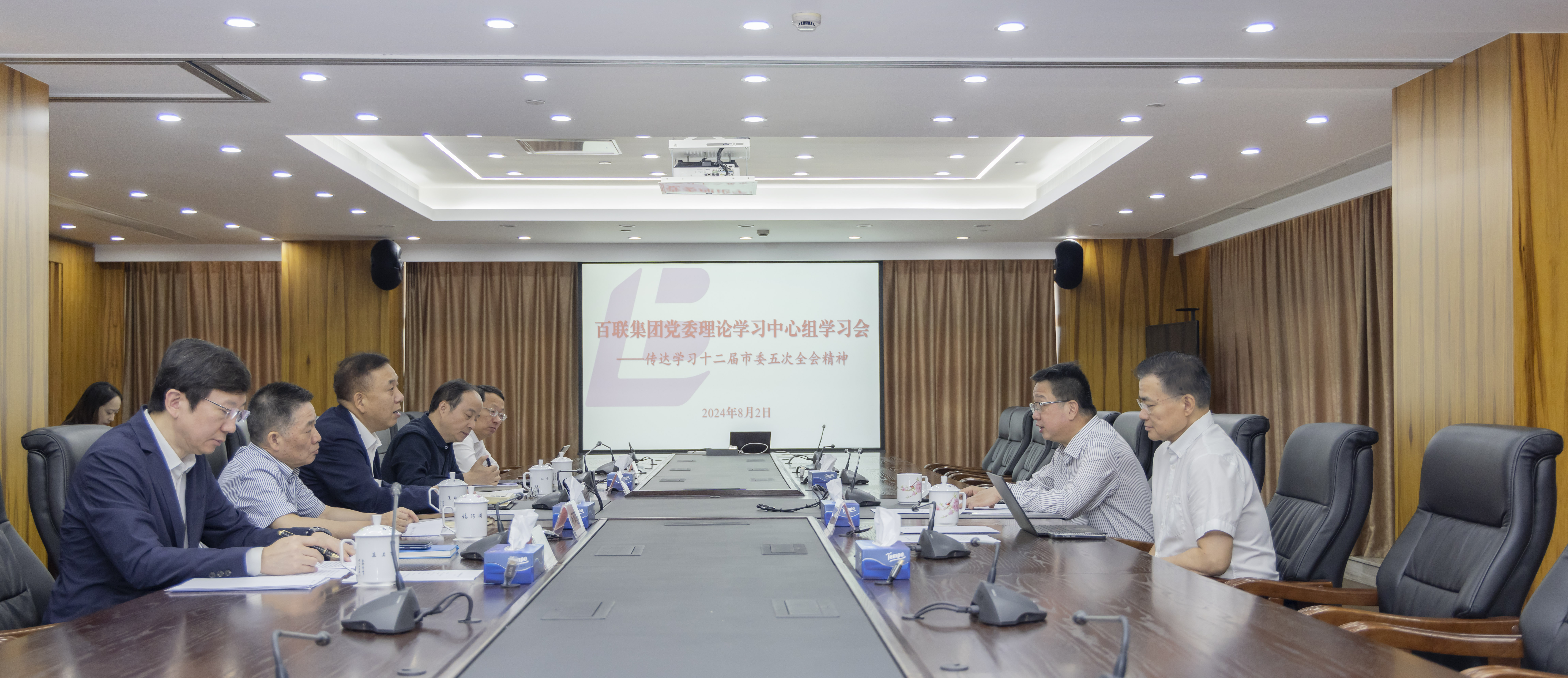 8月2日上午,百联集团党委召开中心组学习会,传达学习十二届市委五次全会精神。集团党委书记、董事长叶永明主持会议并讲话。集团党委副书记、总裁濮韶华,副总裁孙伟交流学习...2024-08-02了解更多 -